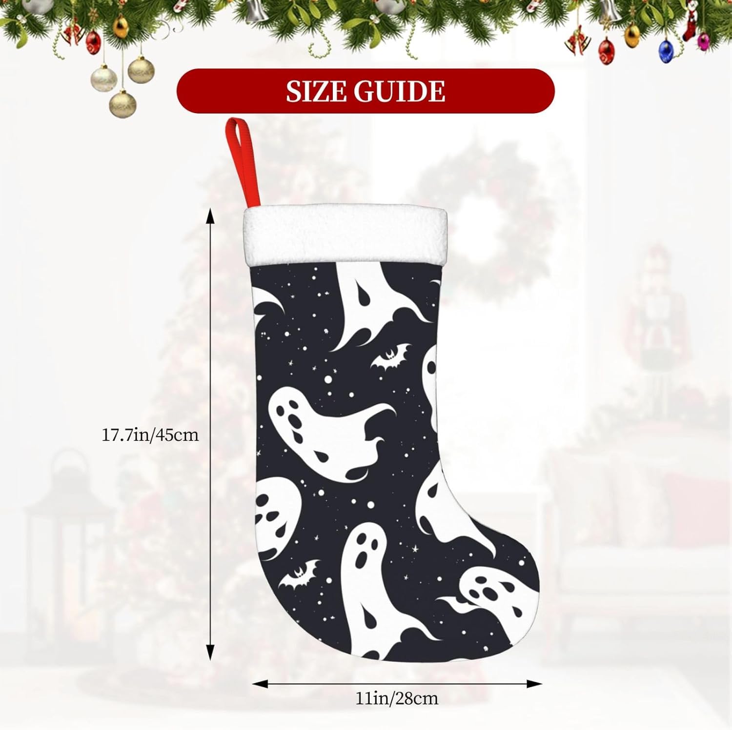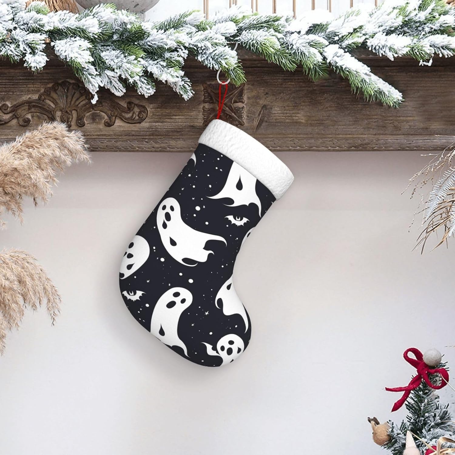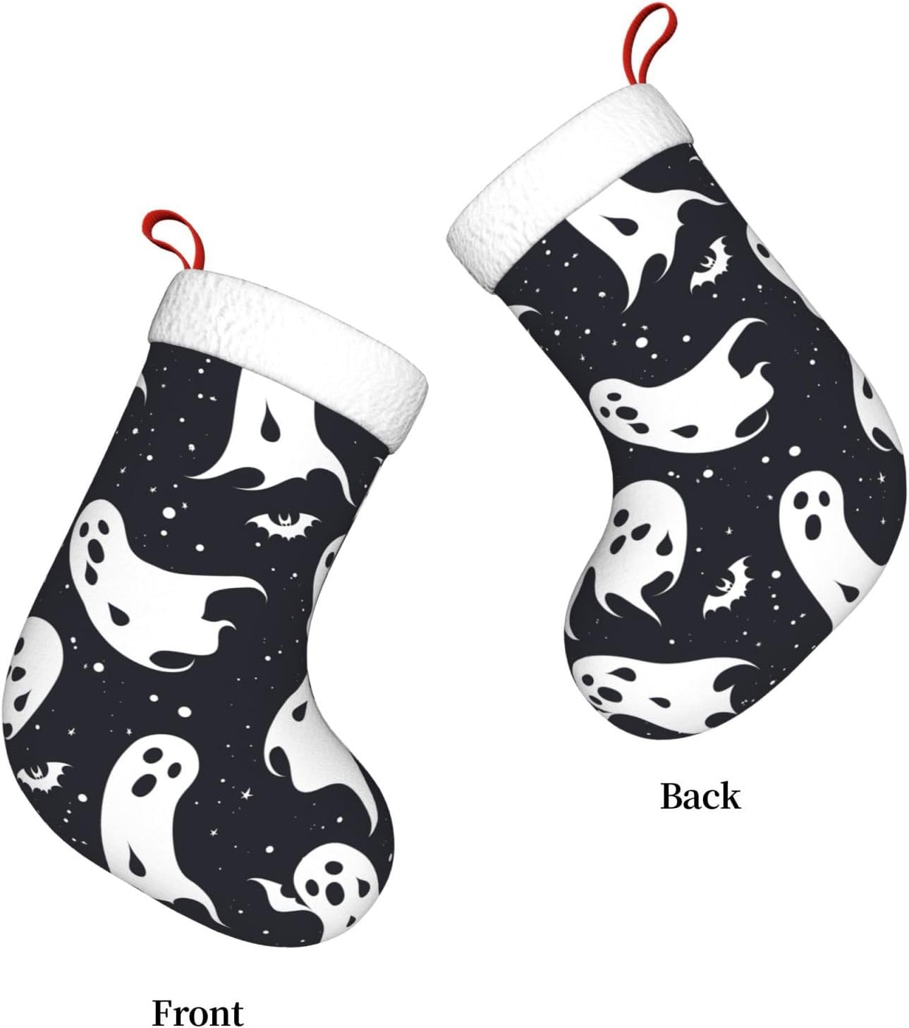 BROLEO Fantasma nero e Halloween Stampa calze decorative natalizie portano allegria festosa a qualsiasi celebrazione! Realizzate in tessuto felpato di alta qualità che mantiene colori brillanti e duraturi senza sbiadire, queste calze sono dotate di bocche morbide e leggere in flanella con un tocco delizioso. Perfetti per Natale, Halloween e feste di festa, aggiungono atmosfere gioiose quando decorano uffici, alberi, caminetti o tavoli. La loro costruzione durevole garantisce anni di utilizzo, mentre l'apertura della cinghia consente una facile sospensione. Riempili con piccoli regali, regali, caramelle o carte regalo per deliziare gli ospiti in occasione di eventi della comunità, spettacoli teatrali, feste o riunioni di famiglia. Ideali per regali sfusi per donne e uomini, queste calze creano vibrazioni festive morbide e leggere per ogni occasione!