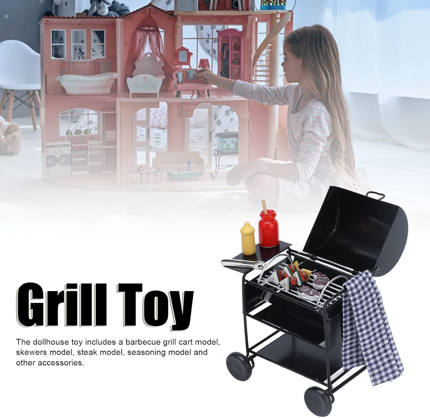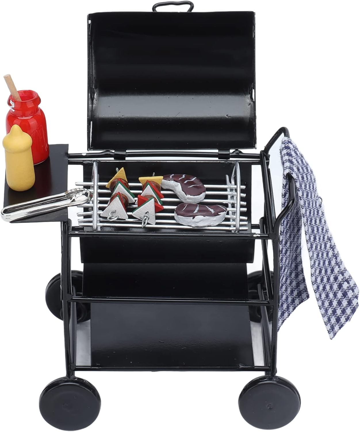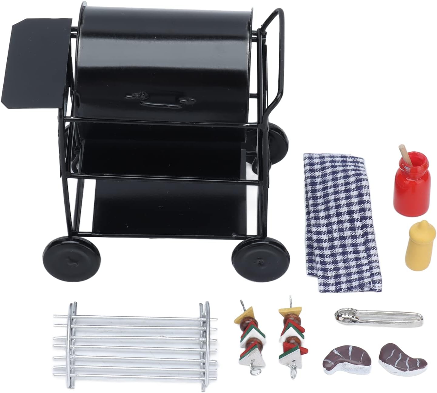 【Costruzione robusta】 Realizzata con sofisticata tecnologia di produzione, la griglia giocattolo è robusta e durevole. Ciò garantisce divertimento duraturo e resistenza al gioco attivo, rendendolo un'aggiunta fantastica a qualsiasi casa delle bambole. 【Divertimento portatile】 La cucina giocattolo è compatta e facile da trasportare, il che la rende eccellente per i bambini che adorano le Box/Cover e i set da gioco in miniatura. La sua portabilità garantisce che il divertimento possa essere portato ovunque e in qualsiasi momento. 【Utilizzo versatile】 Ideale per Box/Cover delle bambole in scala 1:12, il set da gioco per bambini all'aperto è per la decorazione fai-da-te e scene di vita creativa. È un accessorio versatile che aggiunge personalità e fascino a qualsiasi allestimento in miniatura. 【Design Raffinato】Realizzata con materiali di alta qualità, la cucina da gioco vanta un design raffinato e bellissimo. I suoi colori vivaci e la lavorazione dettagliata attirano l'attenzione dei bambini, migliorando l'estetica di qualsiasi scena in miniatura. 【Set completo】 Il set da gioco per barbecue per bambini include tutto il necessario per un'esperienza barbecue. È dotato di un carrello per griglia, spiedini, bistecche, modelli di condimento e altri divertenti accessori, offrendo ore di gioco fantasioso.