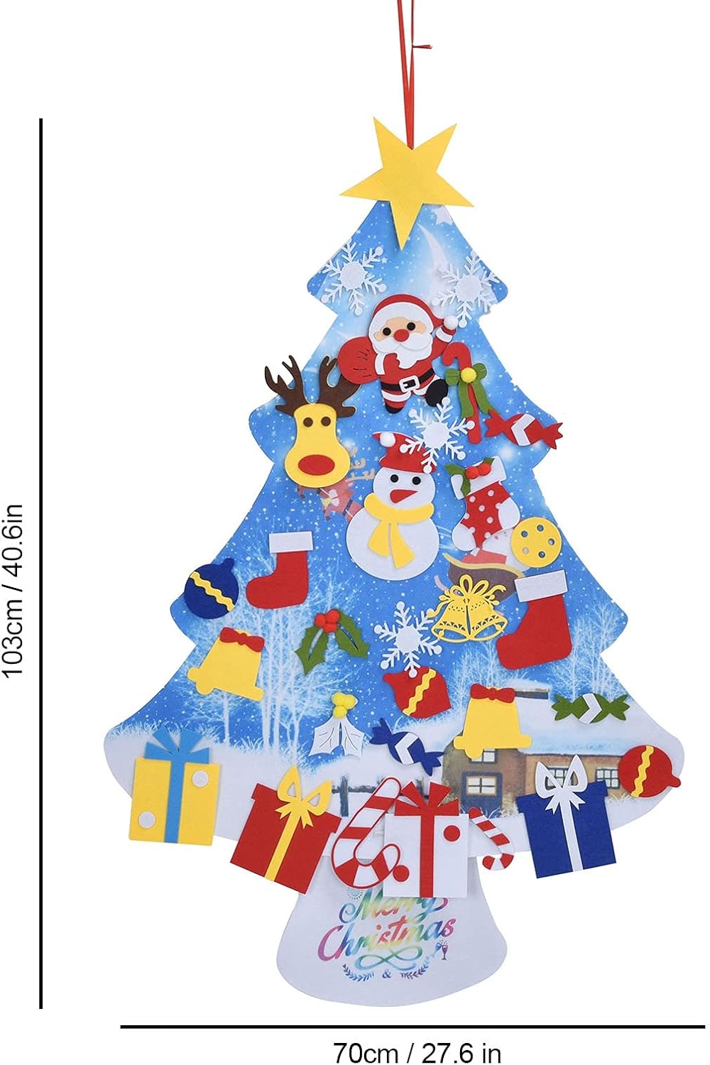 [Decorazioni natalizie migliorate] 31 graziosi ornamenti natalizi e 1 confezione di alberi di feltro, tra cui caramelle, cappelli, calze, alci, pupazzi di neve, fiocchi di neve, Babbo Natale, campanelle, ecc., rendono l'albero vivido. [Attività divertente fai da te] per decorare porte, asili nido, aule, soggiorni, sale giochi e camere da letto, promuovendo creatività e abilità. [Giocattolo educativo] I colori vivaci attirano l'attenzione dei bambini, stimolando la creatività e migliorando la destrezza manuale divertente esperienza di apprendimento durante le vacanze. [Esperienza di legame] Migliora il rapporto genitore-figlio realizzando insieme questo albero, portando gioia e festa nella tua casa. [Facile da montare] Le graziose decorazioni si attaccano facilmente all'albero di feltro con chiusure a strappo, migliorando l'atmosfera festosa.