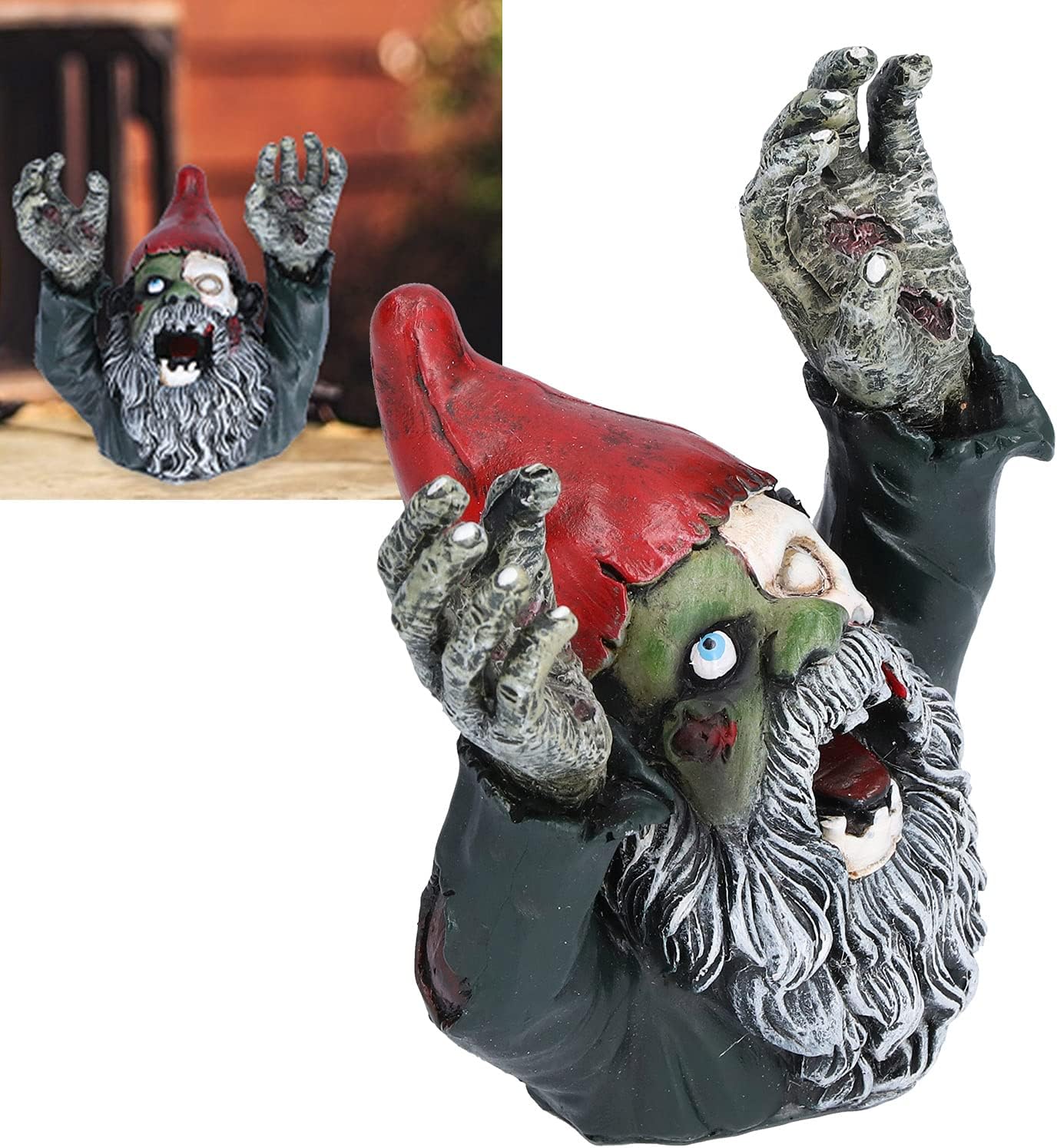 [ per gli amanti degli zombi] Progettato in dimensioni perfette grande visibilità, ideale per gli appassionati di Halloween. [Aspetto altamente simulativo] Dettagli intricati e design speciale lo rendono per l'arredamento della festa di Halloween, misura 10,5 x 10,5 cm. [Materiale durevole e affidabile] Realizzato in resina sintetica di alta qualità, garantisce un uso duraturo. [Accattivante decorazione da giardino] Migliora il tuo giardino, cortile o area interna con il suo design altamente dettagliato e realistico. [Adatto sia per uso interno che esterno] accessorio per la decorazione del giardino di Halloween, aggiunge un tocco spettrale al tuo spazio.