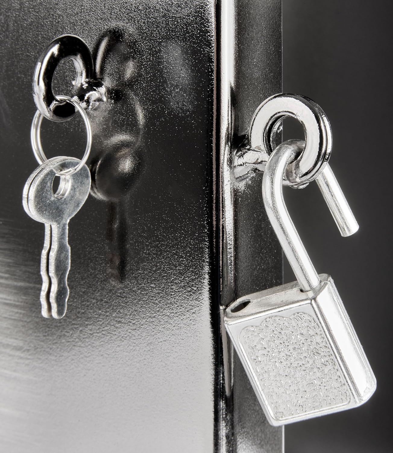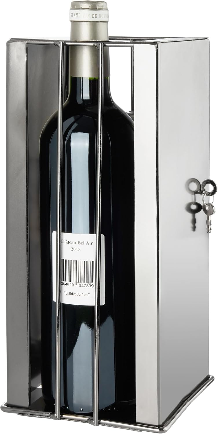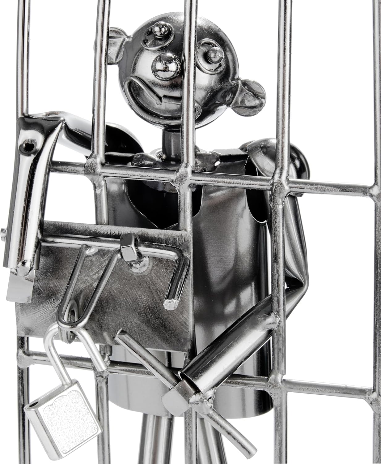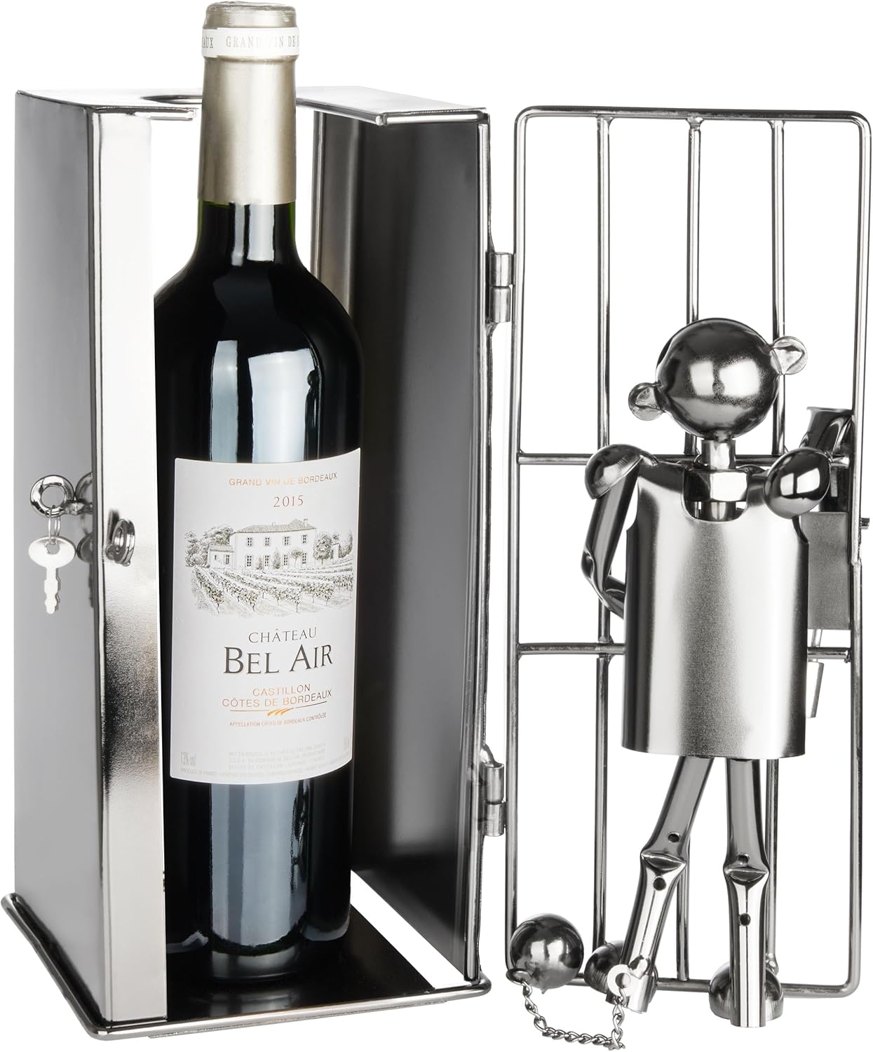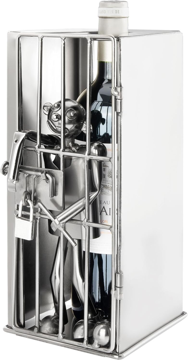🔒 Serratura a chiave: la cella della prigione può essere completamente chiusa utilizzando un chiavistello e una serratura a staffa chiudibile a chiave: il portachiavi con 2 chiavi si trova sul muro accanto alla cella. 🎁 Regalo originale: esclusivo portabottiglie di vino a forma di prigione realizzato in robusto ferro grezzo. Un regalo divertente e originale per gli amanti del vino e i collezionisti! 📐 Compatibilità versatile con le bottiglie: adatto per bottiglie di vino con un diametro massimo di 8 cm. Perfetto anche per bottiglie di olio, birra e liquori. Versatilità in un unico supporto! 🎉 Biglietto d'auguri incluso: oltre all'aspetto rustico del portabottiglie riceverete un classico biglietto d'auguri per vino con la scritta "In Vino Veritas". Un tocco personale per il tuo regalo! 🔒 Design ricco di dettagli: il portabottiglie Prison si distingue per i suoi dettagli dal design accattivante, come la porta a rete, il prigioniero con la sua sbarra e la palla di ferro sulla gamba. Un pezzo d'arte in ferro grezzo che emana fascino rustico!