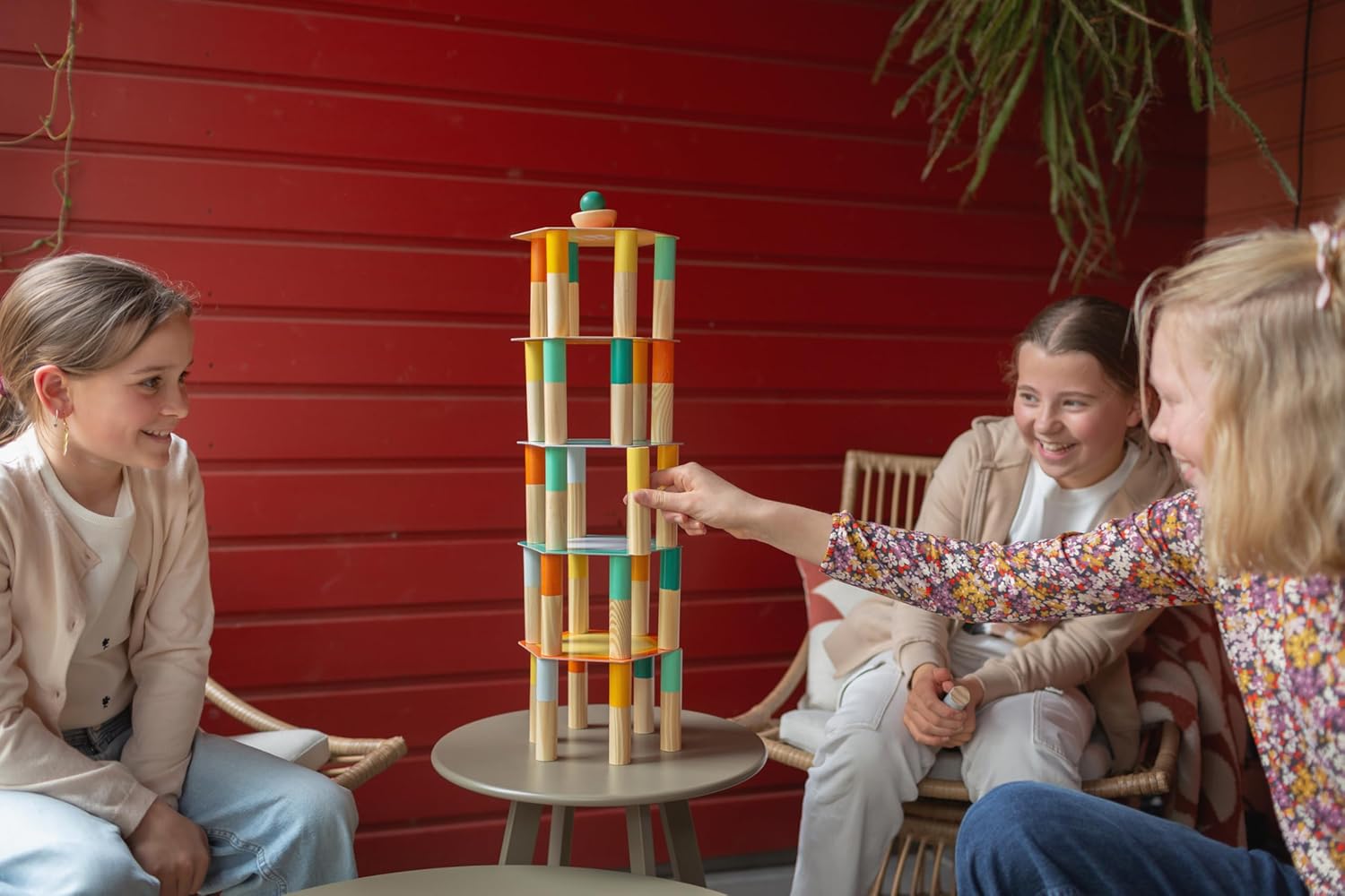 30 bastoncini di legno (12 x 2,5 cm) 5 biglietti (17 x 20 cm) 1 dado 1 bilanciere 1 semi-palla Regole del gioco Materiale: legno, cartone