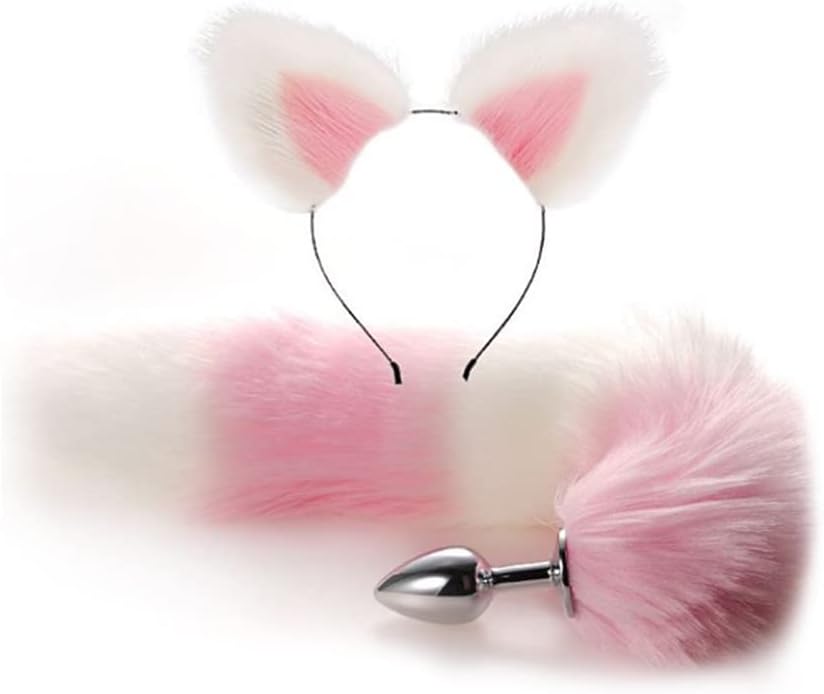 | Caratteristiche | design BSDM Plug Rosa e Bianco, fascia per orecchie di gatto, e coda di volpe finto metallo spina |