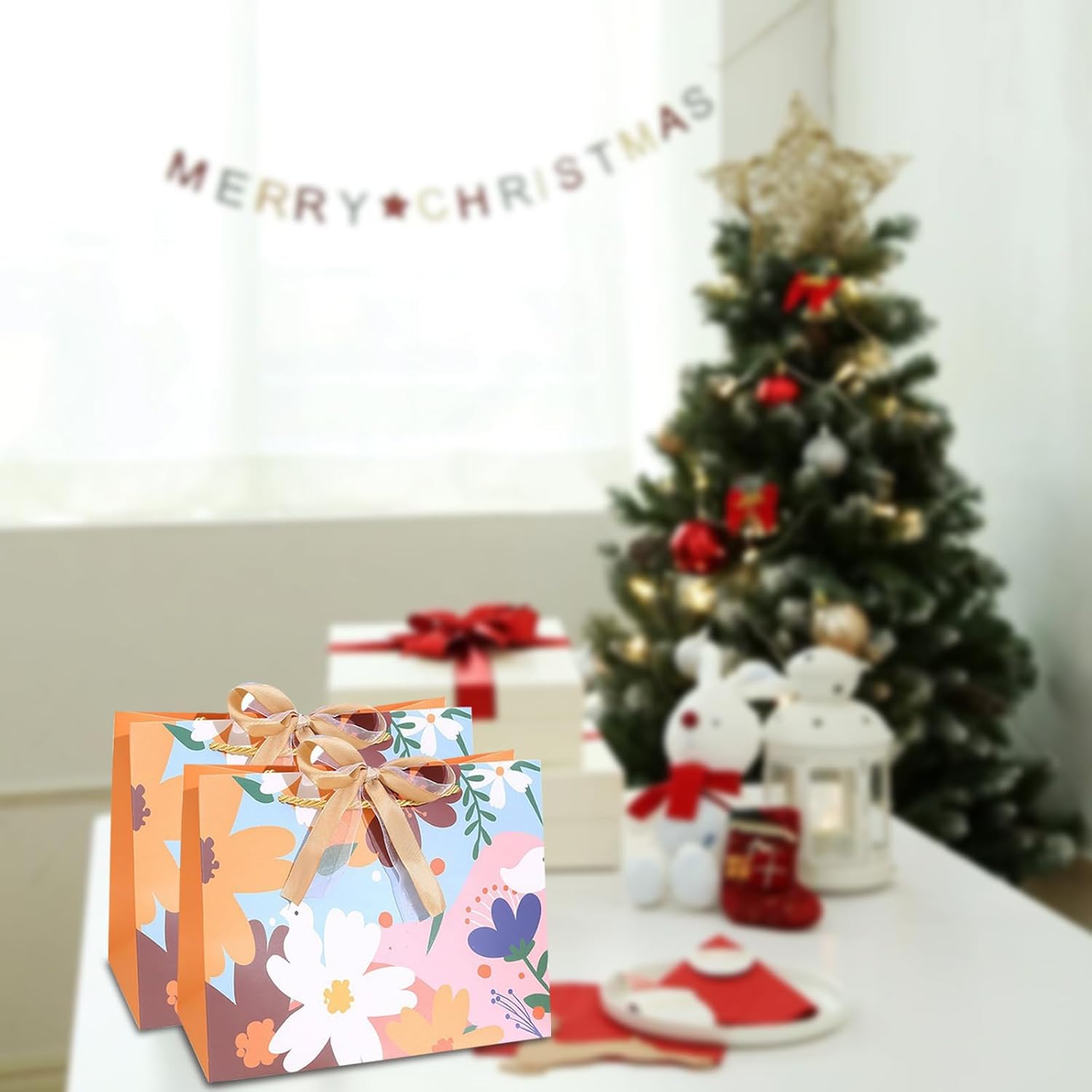 【Squisito set di sacchetti regalo】 La dimensione del sacchetto regalo è 25 cm (L) x 12 (L) x 20 (A). Riceverai 3 delicati sacchetti regalo. 【Design del fiocco】 I fiocchi con sacchetti regalo di Natale non solo aggiungono un'atmosfera elegante, ma arricchiscono anche il tuo regalo e rendono il tuo regalo più lussuoso e speciale. Con il look chic e la qualità brillante, i sacchetti regalo di carta saranno apprezzati dal destinatario. 【Riutilizzabile】Il fondo di ogni sacchetto regalo di carta è rinforzato per migliorare la durata. La struttura super stabile dei sacchetti di carta ha un fondo di riempimento aggiuntivo, durevole e affidabile. 【Grande capacità】 Questi sacchetti regalo per regali presentano una struttura robusta e dimensioni sufficienti per ospitare regali per familiari, amici e colleghi. Sono perfetti per riporre piccoli oggetti come cosmetici, orologi, occhiali, cravatte, cioccolatini, biscotti e altro ancora. Le maniglie rinforzate e la carta spessa assicurano che i tuoi regali siano ben protetti. 【Sacchetti regalo multiuso】 I sacchetti regalo sono adatti per compleanni, feste, matrimoni, Natale, Ringraziamento, Capodanno, Festa della mamma, Festa del papà, San Valentino e molte altre occasioni.