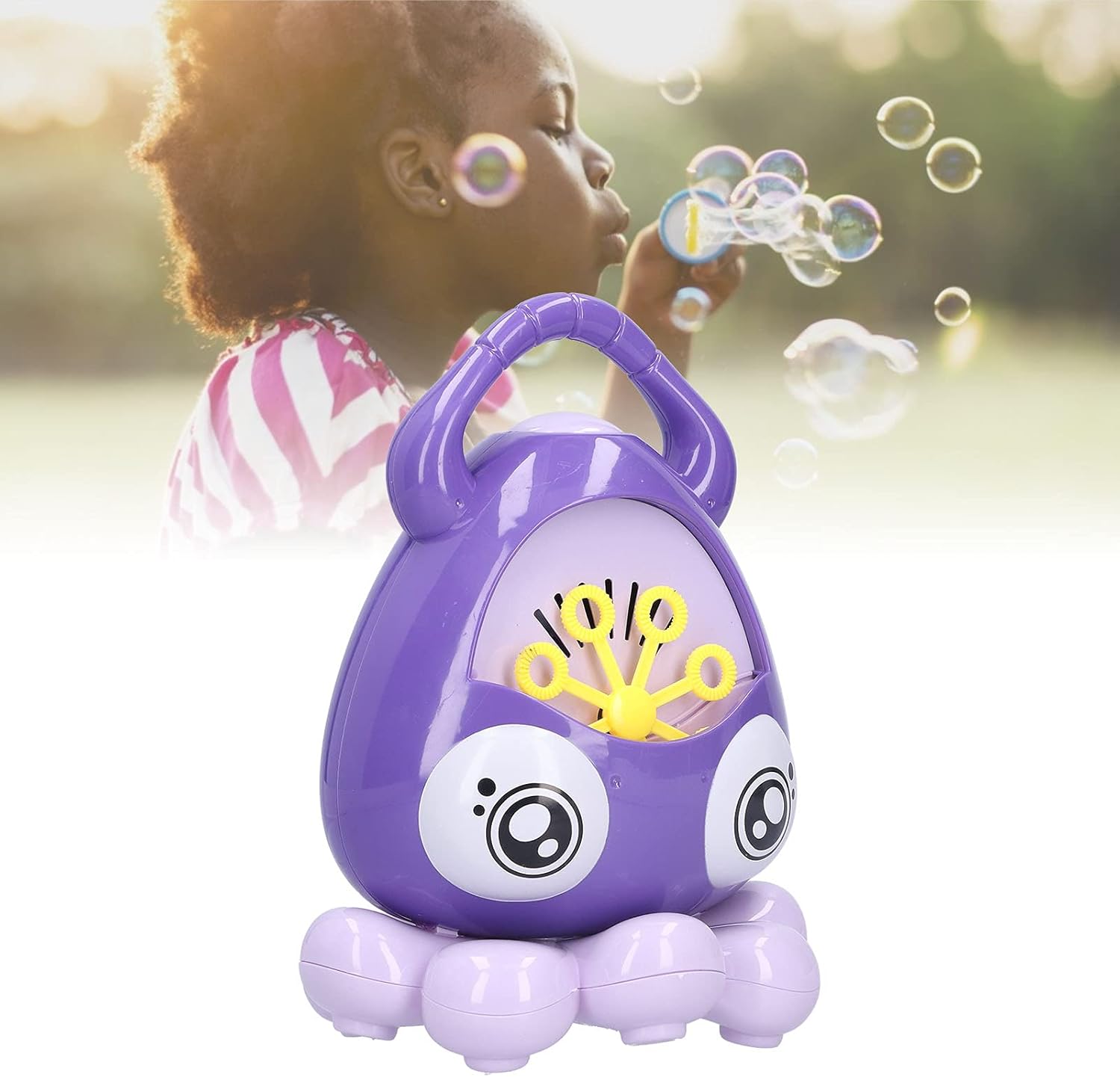 [Materiale durevole e non tossico] realizzato in plastica durevole e non tossica, fornendo una tenacia eccellente e. [Design divertente e portatile] Il design portatile è comodo per i bambini da portare in giro e si diverte a bambini e animali domestici in estate. [Caratteristiche di sicurezza migliorate] include una funzione "Stop una volta" che smette automaticamente di ruotare per proteggere quando viene toccata la bacchetta a bolle. [Uso versatile] Adatto alla creazione di un'atmosfera vivace in varie occasioni come Natale, feste, compleanni, docce per bambini e altro ancora. [Potente output di bolle] presenta un motore potente e 8 bacchette magiche rotanti, producendo oltre 3000 bolle costanti al minuto per bolle più veloci, più alte e più abbondanti.
