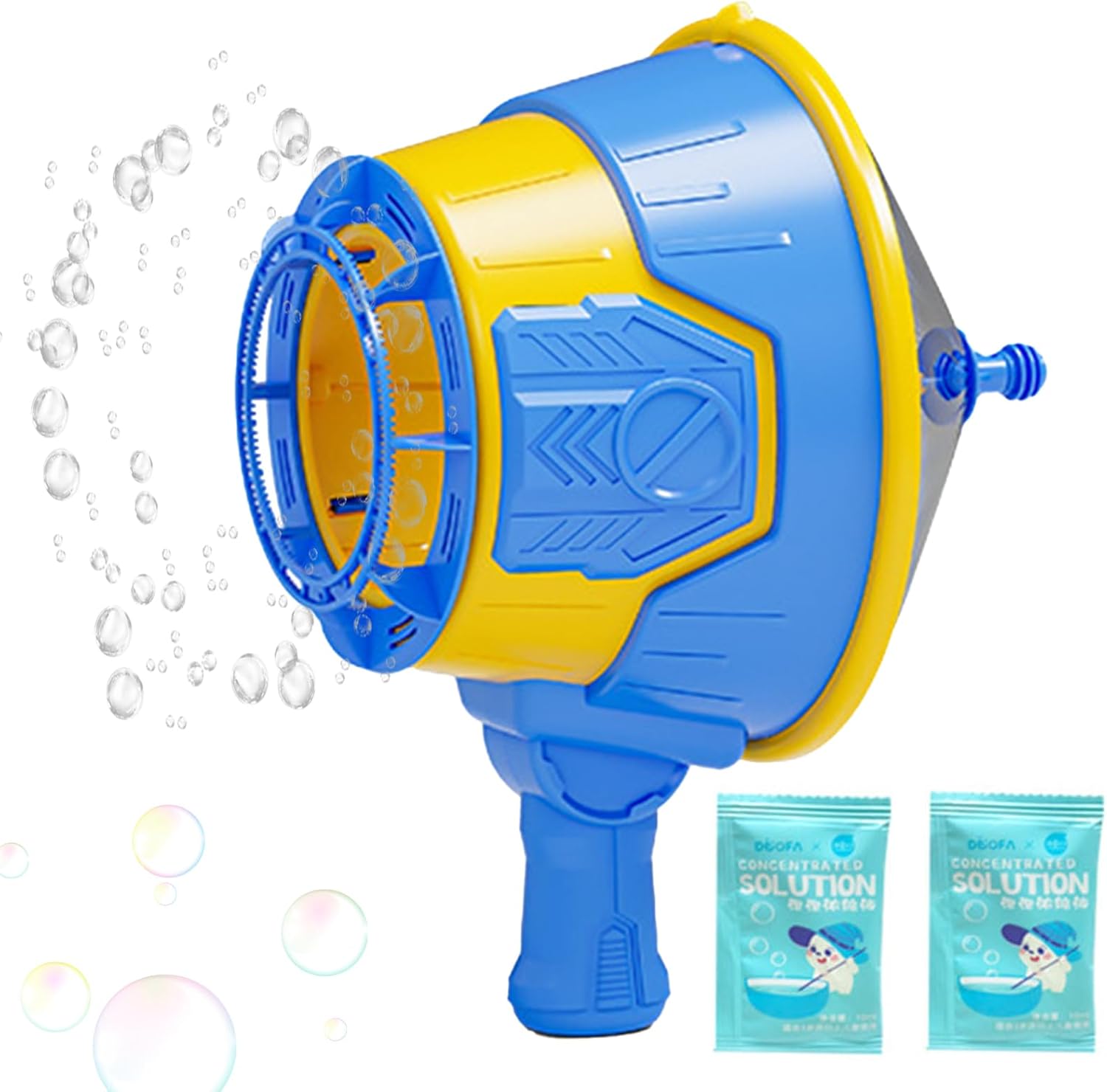 Pacchetto Stamina: 2 flaconi di soluzione inclusi per estendere il gioco e offrire costantemente un'esperienza radiosa e colorata agli utenti. Regalo ideale: ravviva tutte le celebrazioni con questa macchina per bolle, regalo perfetto per compleanni e riunioni. Crea momenti incantati, un regalo eccellente per la felicità dei bambini Crescita creativa: promuove le abilità sociali e l'immaginazione incoraggiando il potenziale di sviluppo, perfezionando al contempo la coordinazione occhio-mano in un ambiente di gioco con bolle coinvolgente particolarmente adatto alle menti giovani Materiale premium: realizzato in robusto PP per una qualità eccezionale, garantendo un uso prolungato in completa sicurezza e stabilità. Questa macchina per le bolle è infrangibile. Effetto di rotazione a 360°: genera uno schema di bolle visivamente ipnotico che si estende per 5 metri, intensificando l'esperienza coinvolgente per anni in qualsiasi luogo.