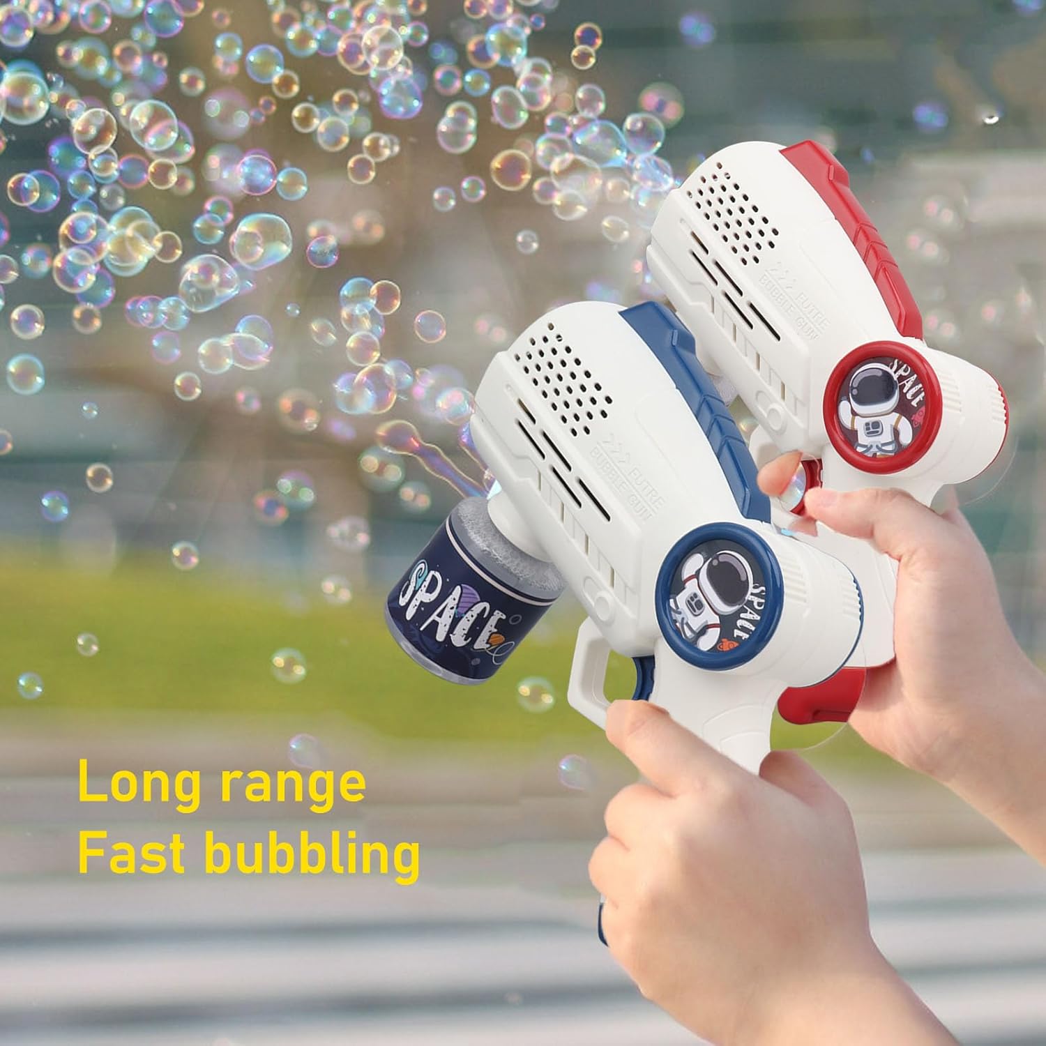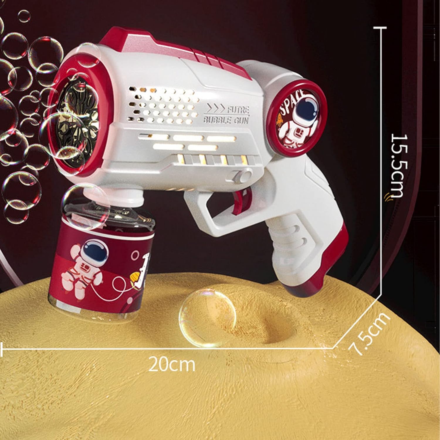 Prevenzione delle perdite: adottiamo un nuovo design di prevenzione delle perdite e viene eseguito un rigoroso controllo di qualità per evitare perdite di liquido per bolle. Non importa se lo metti lateralmente o sulla testa, la macchina Bubble non si sporca con le mani. Scena: i giocattoli a bolle sono un must per le attività estive e all'aperto. Adatto per una varietà di occasioni e può essere utilizzato per appuntamenti, palcoscenici, vacanze, Pasqua, matrimoni, feste di compleanno, ecc. Un regalo ideale per ragazze e Bolla: può produrre oltre 5.000 bolle colorate al minuto, con la gamma di radiazioni della vescica più ampia e più scioccante. Questo giocattolo può portare gioia infinita alla tua famiglia, ai tuoi bambini e agli animali domestici. Uso durevole: questo soffiatore a bolle è realizzato in plastica resistente ed è resistente. La squisita lavorazione artigianale assicura che le mani sensibili all'utente siano ferite o ferite. LED: c'è una luce LED luminosa e premere immediatamente il grilletto, il giocattolo a bolle spara migliaia di bolle colorate incredibilmente belle. Di notte, la luce riflessa dalle bolle la rende più abbagliante.