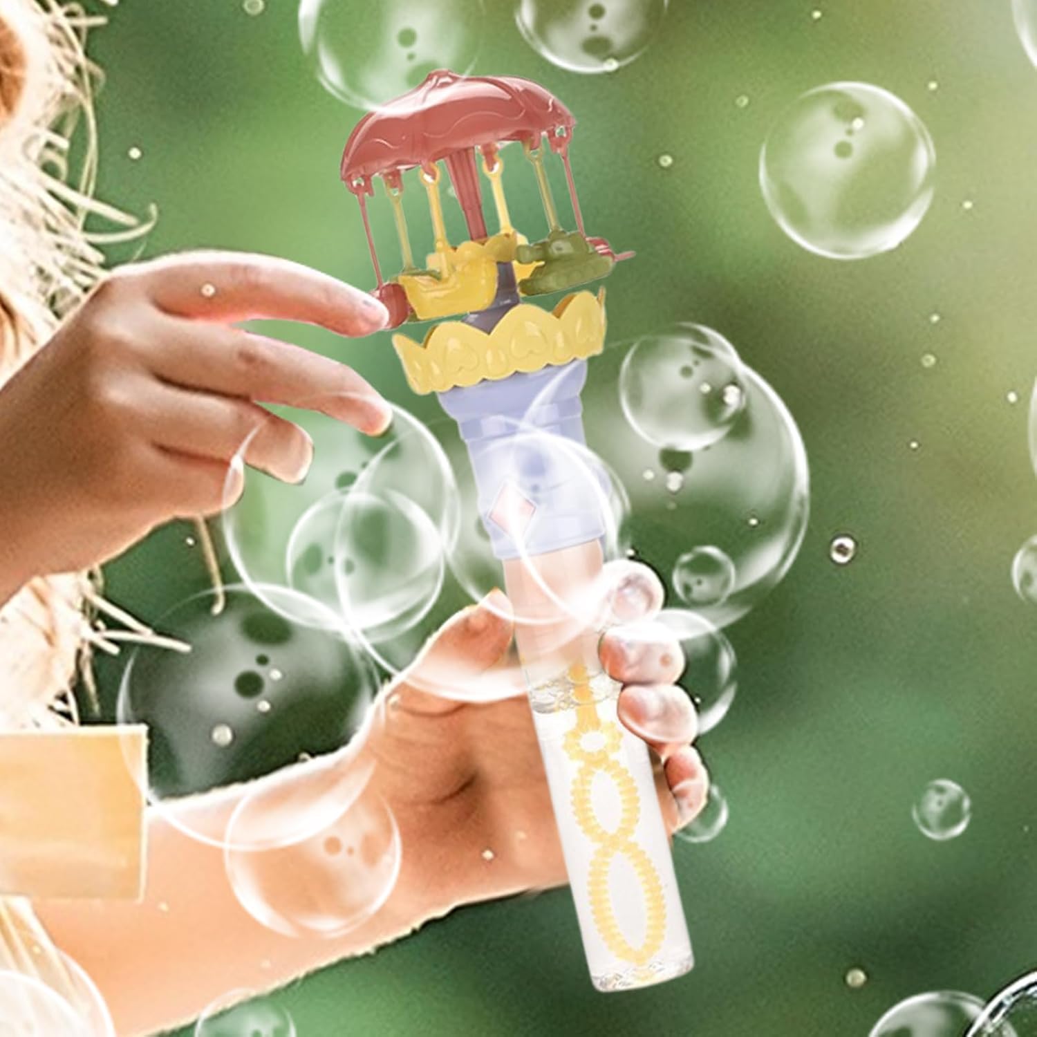 Charm Carosello: L'accessorio perfetto per coniugare attività fisica e risveglio artistico: adoro percorrerli creando graziose spine insaponate. Facile da riempire con qualsiasi sapone a bolle standard Garanzia Magic Moment - Crea enormi nuvole di bolle con facilità Illuminazione magica: Scopri una giostra scintillante con un generatore manuale: gira la manovella per illuminare le tue serate con una luce magica che scaccia immediatamente l'oscurità. Perfetto per creare un'atmosfera magica all'aperto. Progettati per sviluppare l'immaginazione, questi accessori di intrattenimento sono adatti per compleanni, matrimoni e celebrazioni stagionali