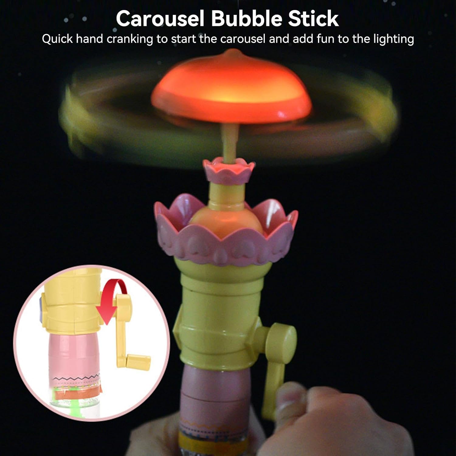 Bubble Blowing Adventure: partecipa all'eccitazione di cercare e competere con bolle usando la nostra bacchetta portatile, un modo divertente per sviluppare il coordinamento e legare gli occhi con gli amici durante le attività estive all'aperto Carousel-Charm: con il suo unico design di bacchette a bolle, le nostre bacchette a bolle porteranno più gioia al di gioco di tuo figlio. Guarda mentre arricchisce il loro divertimento e stimola la loro creatività, rendendo ogni momento un'avventura divertente Leop-a prova in qualsiasi momento: sperimenta la gioia di più bolle con le nostre bacchette a bolle, con un di prevenzione delle perdite a 360 e un design del coperchio a per una perdite a prova di perdite Divertimento notturno a portata di mano: crea spettacolo accattivante con la nostra bacchetta a bolle che può illuminare ad anight; Usando un generatore a mano-serratura, girare la maniglia e guardare mentre la giostra gira e Presente meraviglioso: aggiungi un tocco di fascino ad Halloween, Pasqua, matrimoni, San , compleanni e Natale con le nostre bacchette a bolle, per rendere ogni occasione stravagante e affascinante