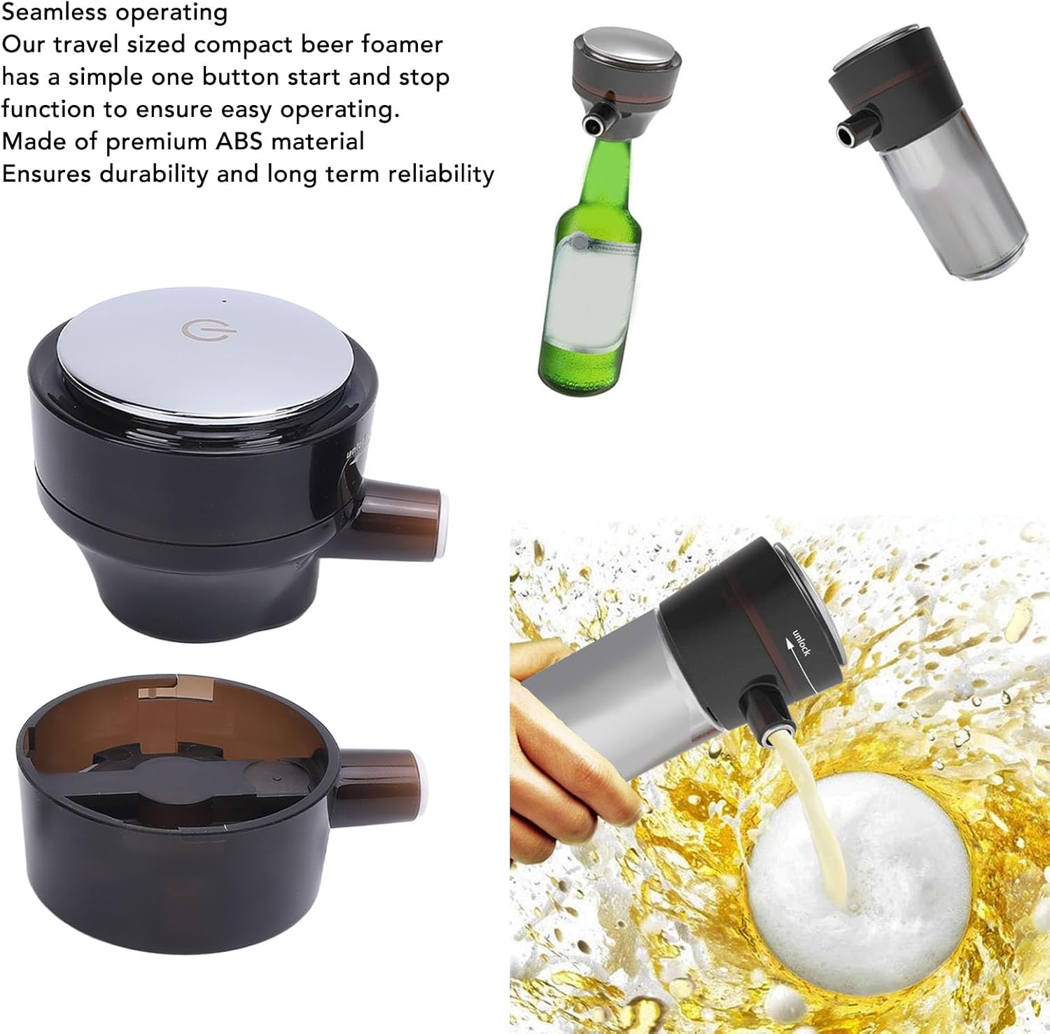 [Design portatile]: Goditi un'eccellente schiuma di birra in qualsiasi momento, ovunque con questo strumento leggero e portatile. Perfetto per feste, bar o campeggio, migliora la tua esperienza di birra in movimento. [Efficient Foam Technology]: la tecnologia a schiuma altamente efficiente migliora la delicata sensazione in bocca della birra, riducendo l'amarezza. Adatto per birra in scatola e in bottiglia, fornendo un sapore morbido e piacevole. [Ampia applicazione]: Non solo per la birra, questa macchina per schiuma a batteria funziona con una varietà di bevande in scatola o in bottiglia, espandendo le tue opzioni di bevande per diverse occasioni, dalle bevande analcoliche ad altre bevande rinfrescanti. [Funzionamento perfetto]: semplice funzione di avvio e arresto di un pulsante per un facile funzionamento. Goditi immediatamente una schiuma rinfrescante di birra, elevando la tua esperienza complessiva di consumo di alcol con comodità. [Costruzione resistente]: Realizzato in materiale ABS premium per la durata. La struttura robusta garantisce affidabilità a lungo termine, perfetta per l'uso quotidiano in feste, bar e avventure all'aperto.