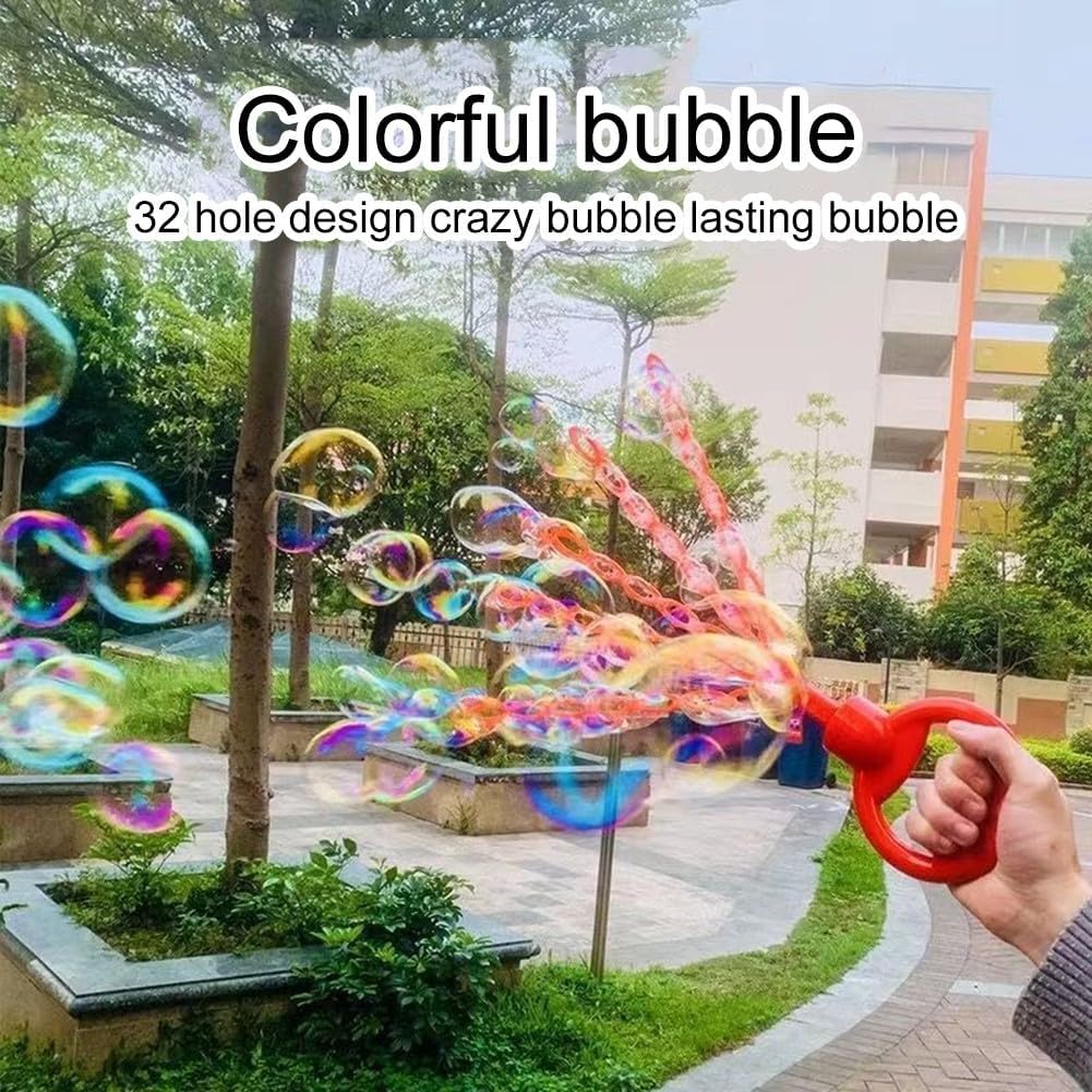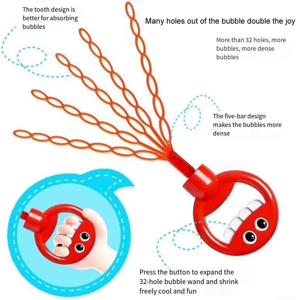 [CREAZIONE MULTI-BOLLE] Prova la gioia di innumerevoli bolle grazie all'innovativo design a 32 fori che porta emozione ad ogni sessione di gioco. Colori audaci e allegri: questa bacchetta a bolle è disponibile in colori accattivanti come rosso, verde, giallo e blu per illuminare qualsiasi evento o riunione all'aperto. Materiale di lunga durata: realizzata in plastica ABS, questa macchina a bolle è progettata per un uso ripetuto mantenendo le sue prestazioni nel tempo. [Tecnologia a cinque artigli] Lo speciale meccanismo a cinque artigli migliora il flusso d'aria per una spettacolare esplosione di bolle che delizierà bambini e adulti.
