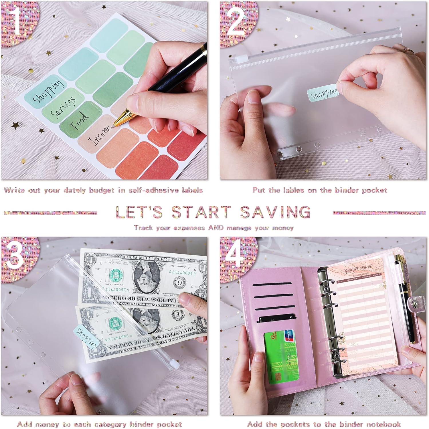 Contenuto della confezione: cartella A6, 12 buste in PVC trasparente, fogli budget a 12 costi, adesivi colorati e adesivi 3 in inglese. [Dimensioni] Il raccoglitore A6 è leggero, 18,5 x 13,5 x 3 cm, facile da trasportare, adatto per casa, ufficio, scuola e viaggi, il che lo rende una scelta ideale per familiari, amici, colleghi e bambini. Design a 6 anelli, facile da aprire e chiudere, in modo da poter aggiungere o rimuovere facilmente le pagine interne. Multifunzionale: le tasche con cerniera sono una scelta ideale per conservare fatture, carte, coupon, francobolli e altri piccoli oggetti. Puoi facilmente calcolare entrate e spese per vedere se sono in equilibrio. I tag colorati possono aiutarti a classificare e organizzare meglio i progetti, il che è molto conveniente per la tua gestione. 【 Ottimo regalo 】 Per insegnare ai bambini come gestire le loro finanze, questo pianificatore di budget ti aiuta a insegnare loro come allocare correttamente i fondi. Può aiutarti a organizzare le spese, tenere traccia di depositi e prelievi e raggiungere obiettivi di budget, rendendolo un ottimo regalo.