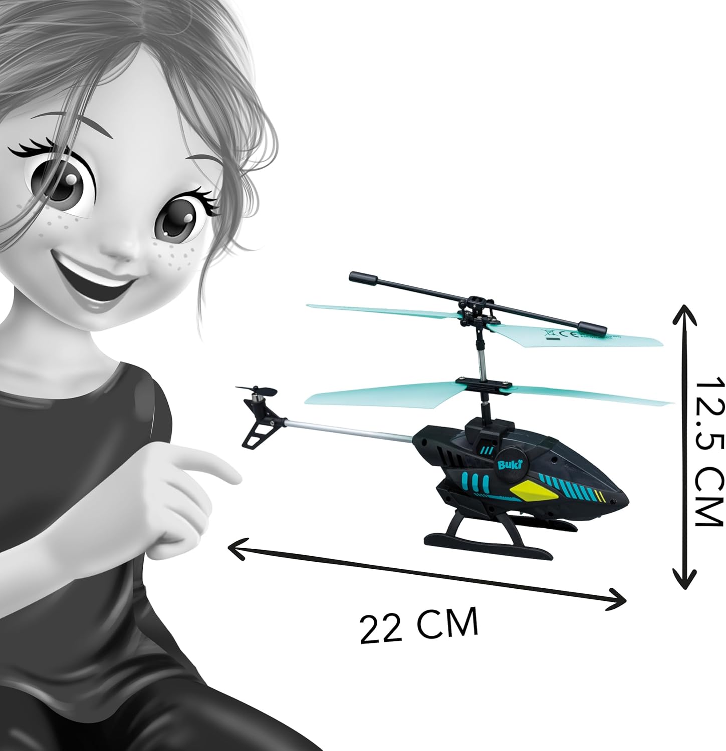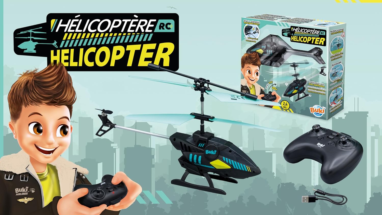 Un elicottero radiocomandato facile da pilotare sia all'interno che all'esterno. Telecomando 2,4 GHz L'elicottero si stabilizza grazie al giroscopio integrato Funziona con una batteria al litio che si ricarica tramite USB Richiede la batteria nel telecomando LR03*2 Lunghezza 23 cm Istruzioni illustrate a colori A partire da 8 anni