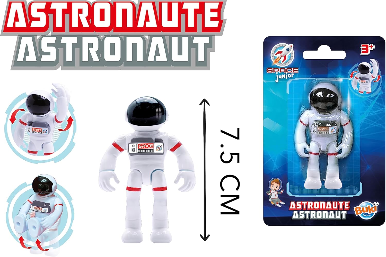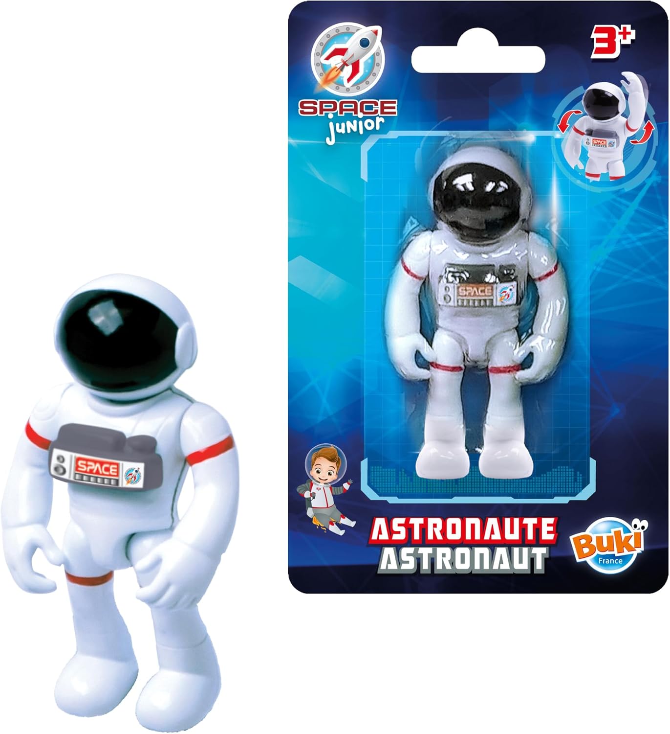 Un astronauta di 7,5 cm che le cui gambe si piegano e le braccia si muovono separatamente Da 3 anni Compatibile con altri prodotti della gamma Space Junior
