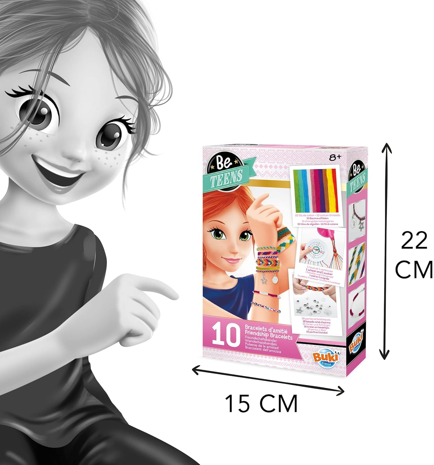 Dimensioni confezione articolo: 4,4 L x 24,0 A x 20,2 L (centimetri) Crea 10 braccialetti alla moda con filo di cotone, perline e ciondoli Usa la ruota in schiuma o la ventosa per tenere il braccialetto Dagli 8 anni in su