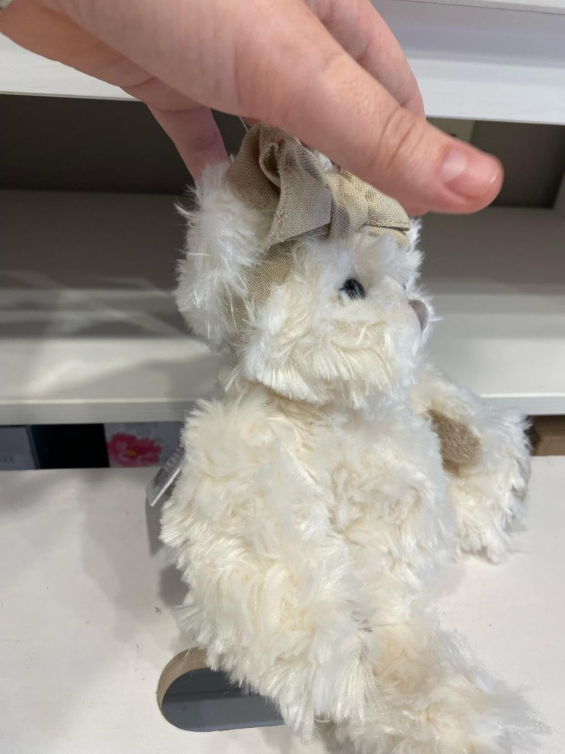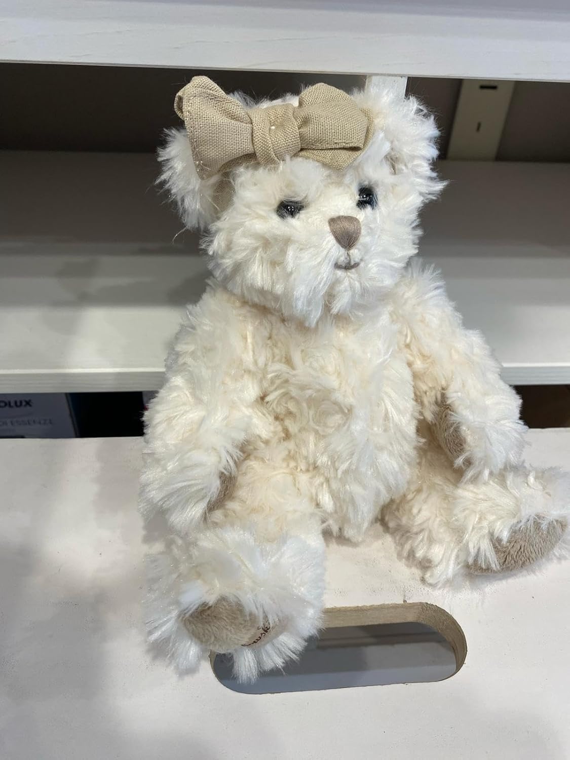 Noah è l'orsacchiotto con il fiocco beige al collo, Emma è l'orsacchiotto con il fiocco beige in testa.
