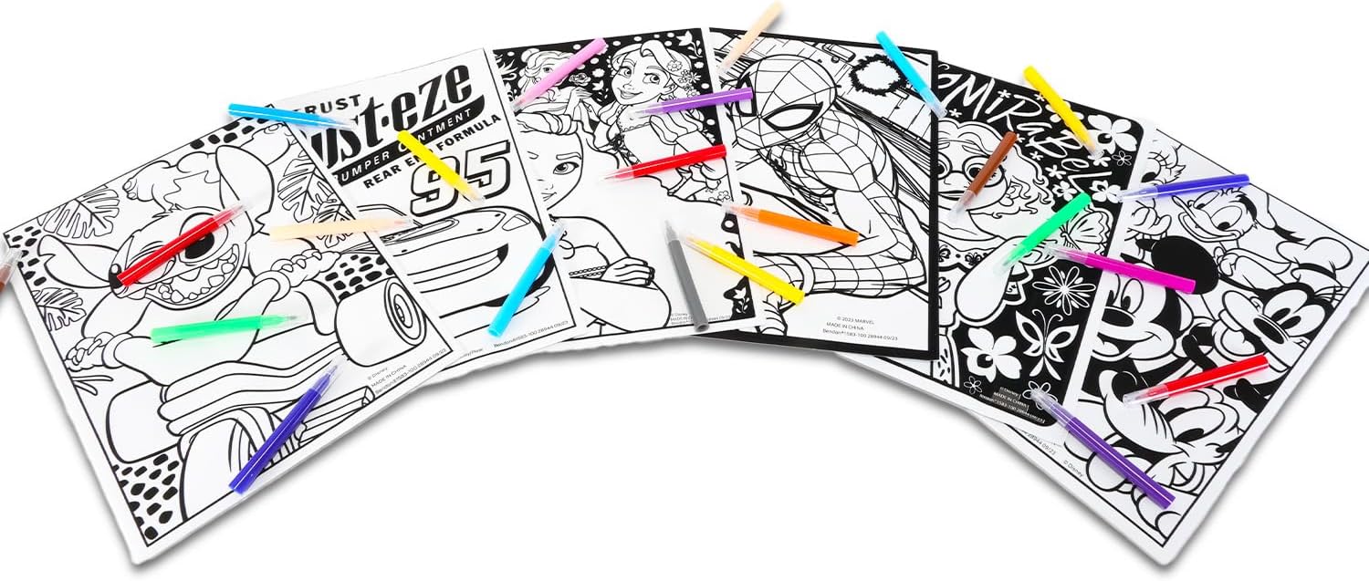 Bulk Disney - Poster da colorare in velluto per bambini, confezione con 6 pagine da colorare in velluto con Topolino, Stitch, Spiderman, More Plus, adesivi, confezione di fogli da colorare Disney Fuzzy Velvet Questo set da colorare in velluto Disney include 6 poster da colorare in velluto sfocato con Topolino e amici, principesse Disney Princesses, Spiderman, Cars, Encanto, Stitch. Ogni poster include 5 mini pennarelli. Ogni poster Disney color your own include uno sfondo in velluto, perfetto per migliorare il tuo poster da colorare con una trama unica e nasconderà facilmente eventuali errori. Sicuramente un successo con tutti i fan di Disney questo set di poster da colorare in velluto sfuso è ottimo da regalare a qualsiasi fan di Disney sia per ragazzi che per ragazze. Il set di poster da colorare in velluto sfocato Disney con licenza ufficiale per bambini include anche adesivi Tsum Tsum, un libro di adesivi per il viso e un gancio per porta del castello Beach Kids.