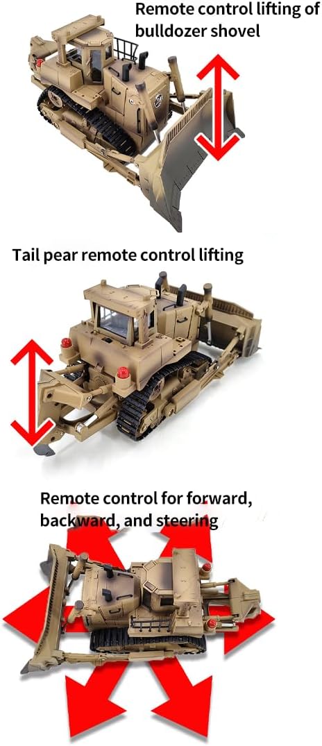 Simulazione di funzionamento realistica La lama e lo scarificatore telecomandati consentono manovre di costruzione realistiche. Le luci integrate e i suoni simili al motore migliorano l'esperienza coinvolgente. Durata più lunga con batteria ricaricabile Dotato di una batteria al litio da 3,7 V 900 mAh che fornisce fino a 30 minuti di controllo. La ricarica USB garantisce un rifornimento sicuro ed efficiente. Il telecomando a 9 canali a 2,4 GHz supporta avanti/indietro, rotazione, sollevamento lama, movimento ripper e modalità demo. L'accoppiamento indipendente previene le interferenze per il funzionamento multiutente. Struttura robusta e durevole realizzata con un mix di lega e componenti in plastica resistenti agli urti. La struttura robusta garantisce stabilità su superfici interne ed esterne leggere. Design adatto a più dispositivi L'accoppiamento avanzato di frequenza consente a più veicoli di funzionare contemporaneamente senza conflitti di segnale, perfetto per mostre collettive o sessioni di appassionati.