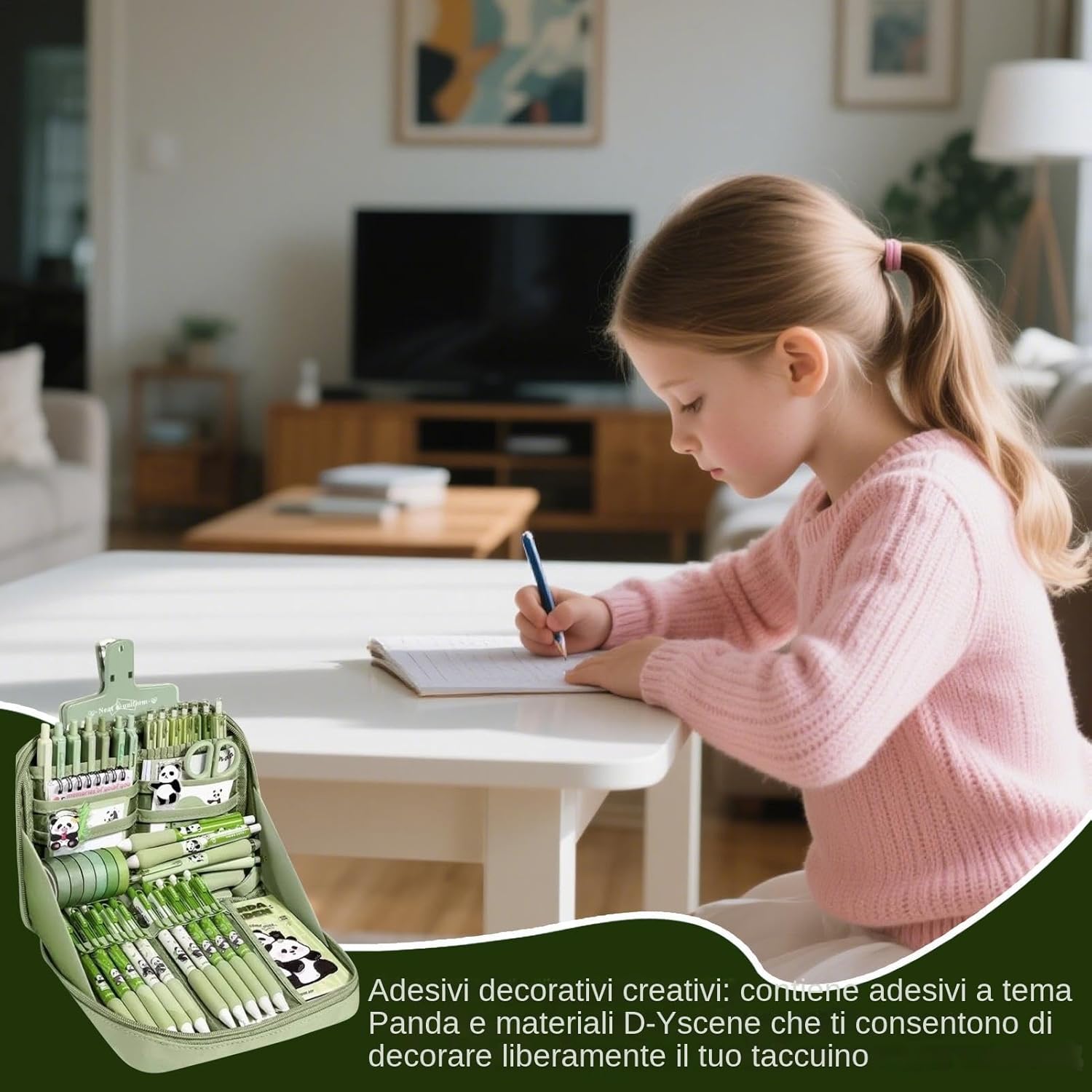 Accessori da scrivania versatili: questo set di forniture per la scuola Panda soddisfa le esigenze di apprendimento e creative con penne a forma di panda, di correzione e un design pratico per l'uso quotidiano Durabilità con cerniera e cotone: dotato di cerniere lisce e anelli di cotone rinforzati per fornire funzionalità affidabili, abbinate a un design multi-compartimento che include partizioni a maglie per il posizionamento organizzato di cartoleria, combinando sia l'utilità che una struttura visiva accattivante Promuove il divertimento creativo: gli adesivi divertenti a tema panda consentono agli utenti di decorare notebook e articoli di cancelleria, scatenando un'espressione creativa fantasiosa e divertente Penne panda versatili: progettate per le note, il journaling e le attività creative, con penne carine a forma di panda che consentono la scrittura , mentre gli evidenziatori aggiungono tocchi vibranti per l'uso quotidiano Best Presenting Choice: Progettato per esprimere i migliori auguri, questo set presente è una scelta ideale per la giornata o i compleanni per bambini, combinando eleganza e portabilità per creare un'esperienza di presentazione memorabile e amata per i giovani studenti
