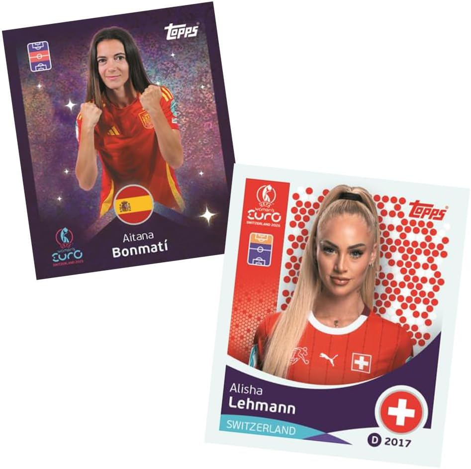 UEFA Euro 2025 Switzerland – Bundle con esclusivi maniche collect-it.de MY HOME OF CARDS + TOYS Riceverete 10 sacchetti della serie Topps UEFA Women's Euro 2025 Switzerland 1 sacchetto contiene 6 adesivi 40 custodie collect-it.de MY HOME OF CARDS + TOYS esclusive Immergetevi nell'emozionante mondo della UEFA Women's Euro 2025 con la nostra esclusiva serie di adesivi Questa collezione offre oltre 300 adesivi di alta qualità che faranno battere il cuore di ogni tifoso di calcio. Ogni confezione di adesivi contiene una varietà di motivi, tra cui giocatori, squadre e momenti indimenticabili del torneo.