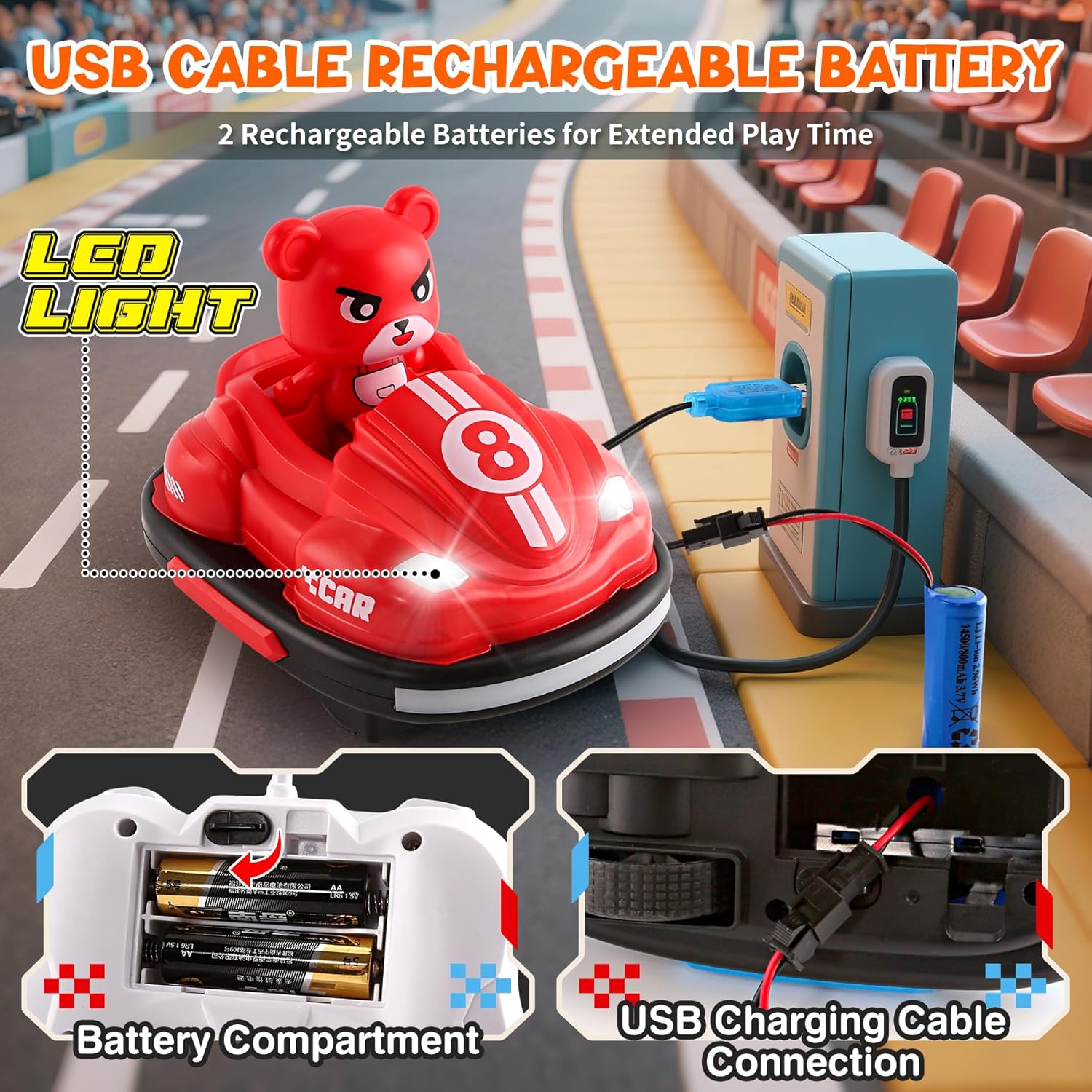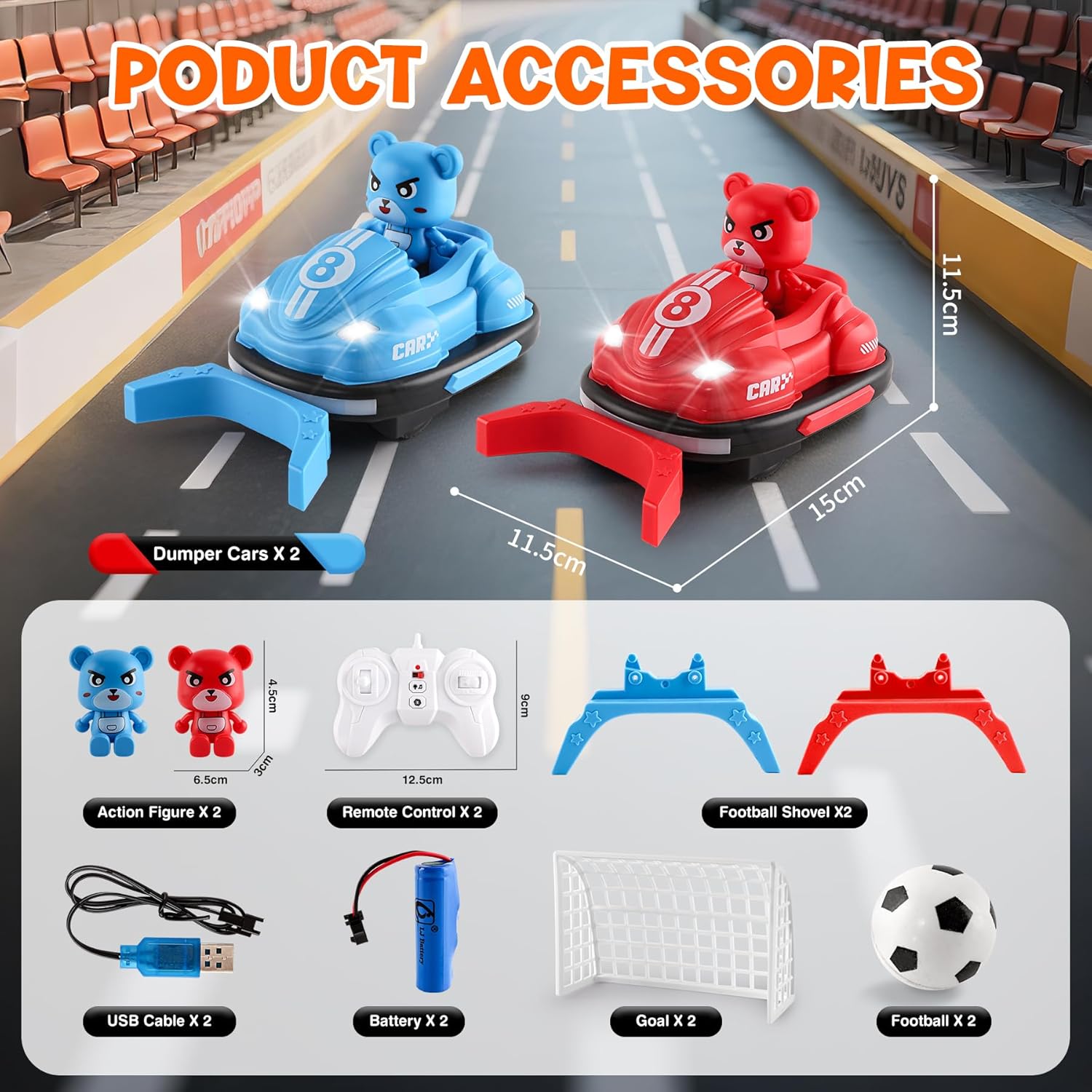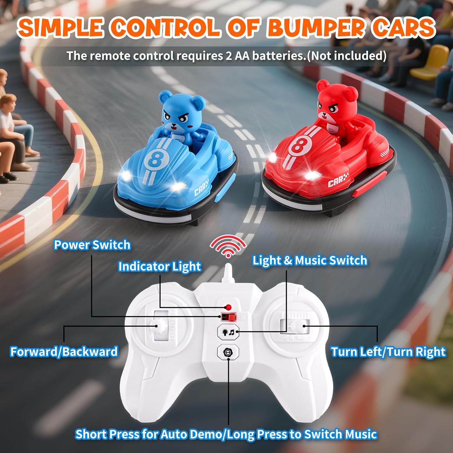 Set di 2 auto telecomandate con gioco di calcio: questo giocattolo pieno di azione include 2 auto da shock telecomandate, 2 gol di calcio e un mini pallone. I bambini possono divertirsi a fare battaglie in auto o passare a partite di calcio telecomandate per il doppio divertimento! Luci, musica e modalità sport interattive: le luci LED lampeggianti e la musica accattivante aumentano l'impegno e danno l'impressione di vivere una vera competizione. Che si tratti di un duello incisivo o di una partita di calcio, questo giocattolo RC garantisce momenti emozionanti per i bambini attivi che amano le auto e lo sport. Telecomando adatto ai bambini: progettato per i principianti, il telecomando intuitivo è perfettamente adatto alle mani piccole. I comandi semplici (anteriore, posteriore, rotazione) consentono ai bambini dai 5 agli 8 anni di guidare la propria auto facilmente, sia in modalità battaglia che in calcio. Resistente, sicuro e progettato per l'azione: realizzato con materiali resistenti agli urti e sicuro per i bambini, le auto RC sono pronte a incassare collisioni e colpi durante i giochi energici. Ideale per giocare al chiuso, questo giocattolo favorisce il movimento e la competizione sana. Regalo ideale per i bambini: stai cercando un'idea regalo originale? Questo giocattolo 2 in 1 auto autoguidata e calcio soddisfa sia i ragazzi che le ragazze. Una scelta dinamica e creativa che unisce divertimento del telecomando e passione per lo sport.