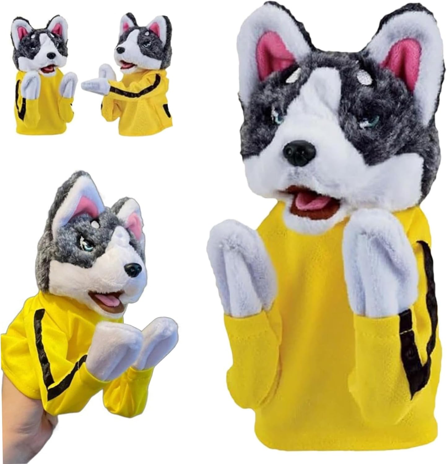 Utilizzo interattivo e divertente: il set di marionette a mano presenta mani mobili ed effetti sonori, consentendo ai bambini di creare storie e scenari fantasiosi durante il gioco, migliorando le loro capacità di comunicazione e creatività. Emozionante gioco di boxe d'azione per cani: con azioni di Kung Fu, queste marionette per cani Hung Fu offrono un esilarante gioco di boxe d'azione per cani. I giocatori possono sfidarsi a vicenda per mettere alla prova le proprie abilità e reazioni, offrendo un modo divertente per godersi una competizione amichevole con amici e familiari. Peluche per gioco interattivo: progettate su misura per il gioco interattivo, queste marionette a mano Kung Fu Husky offrono esperienze di gioco coinvolgenti e coinvolgenti. Incoraggiando l'immaginazione e lo sviluppo delle abilità, i bambini possono liberare la loro creatività godendosi ore di divertimento. Morbido peluche: realizzato in materiale peluche, il burattino Dog Hand garantisce un'esperienza utente morbida e confortevole. È lavabile e facile da pulire, adatto alla maggior parte dei bambini e degli adulti per un uso a lungo termine. Giocattolo animale Kung Fu: il nostro giocattolo versatile offre vari stili di gioco per soddisfare le tue preferenze, offrendo divertimento, relax e migliorando la coordinazione occhio-mano. Promuove anche giochi di gruppo e interazione sociale.
