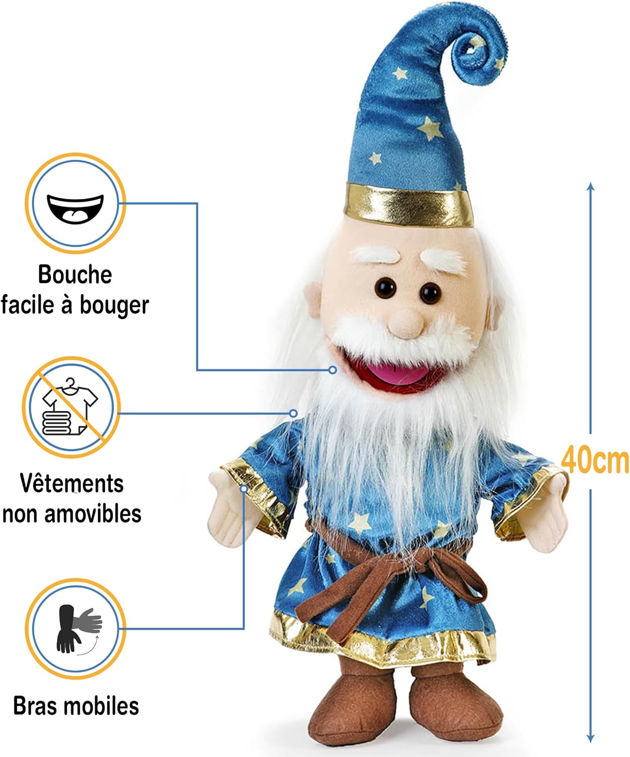 Burattino da mano di alta qualità realizzato da Silly Pups. Progettato per i bambini ma si adatta alla maggior parte delle mani degli adulti. Altezza: circa 40 cm. Peso leggero: ca. 200 g. L'abbigliamento dal design accattivante e dettagliato non è rimovibile.