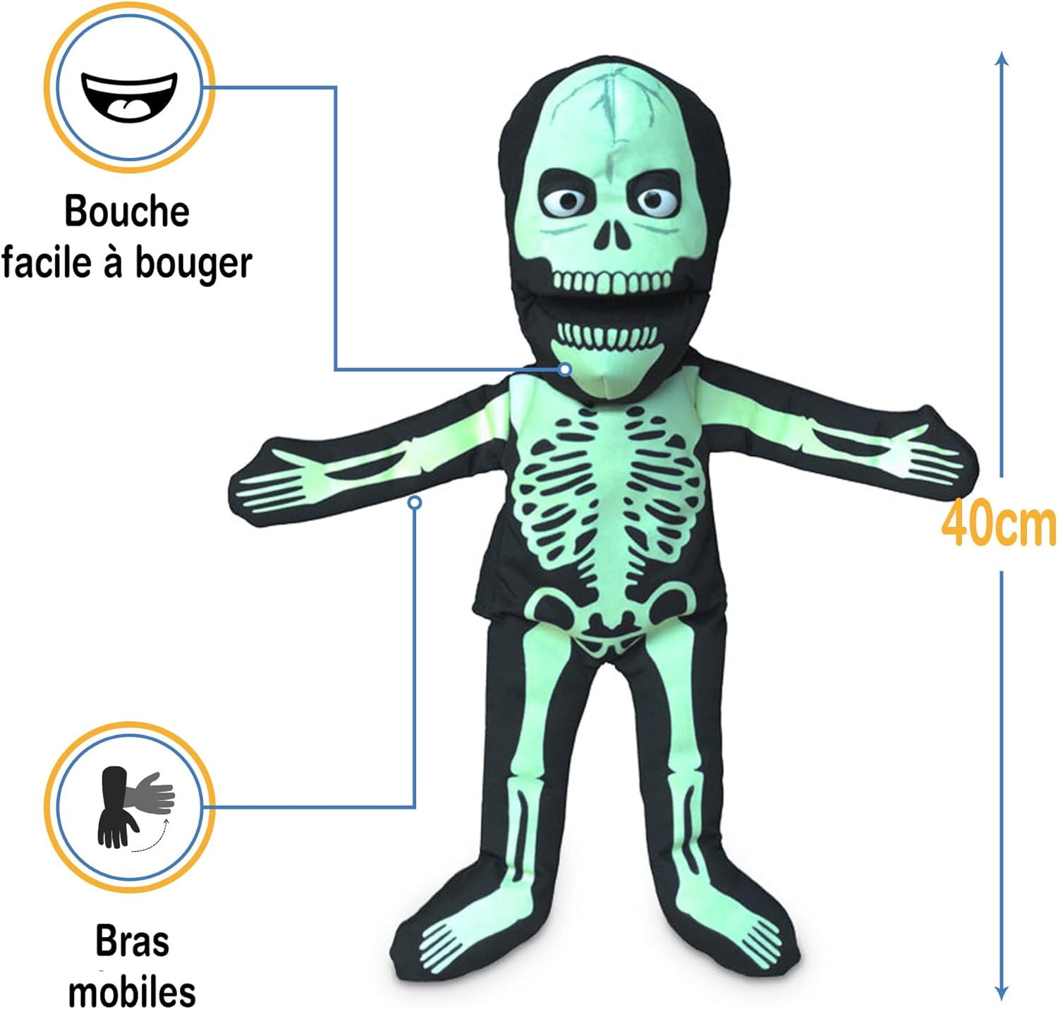 Si illumina al buio creando un effetto fantastico. burattino a mano con bocca mobile realizzato da Silly Puppets. Progettato per i bambini ma si adatta alla maggior parte delle mani degli adulti. Bocca e braccia facili da spostare. Ingresso manuale dal fondo del burattino. Altezza: ca. 14 pollici. Leggero: solo 227 g.