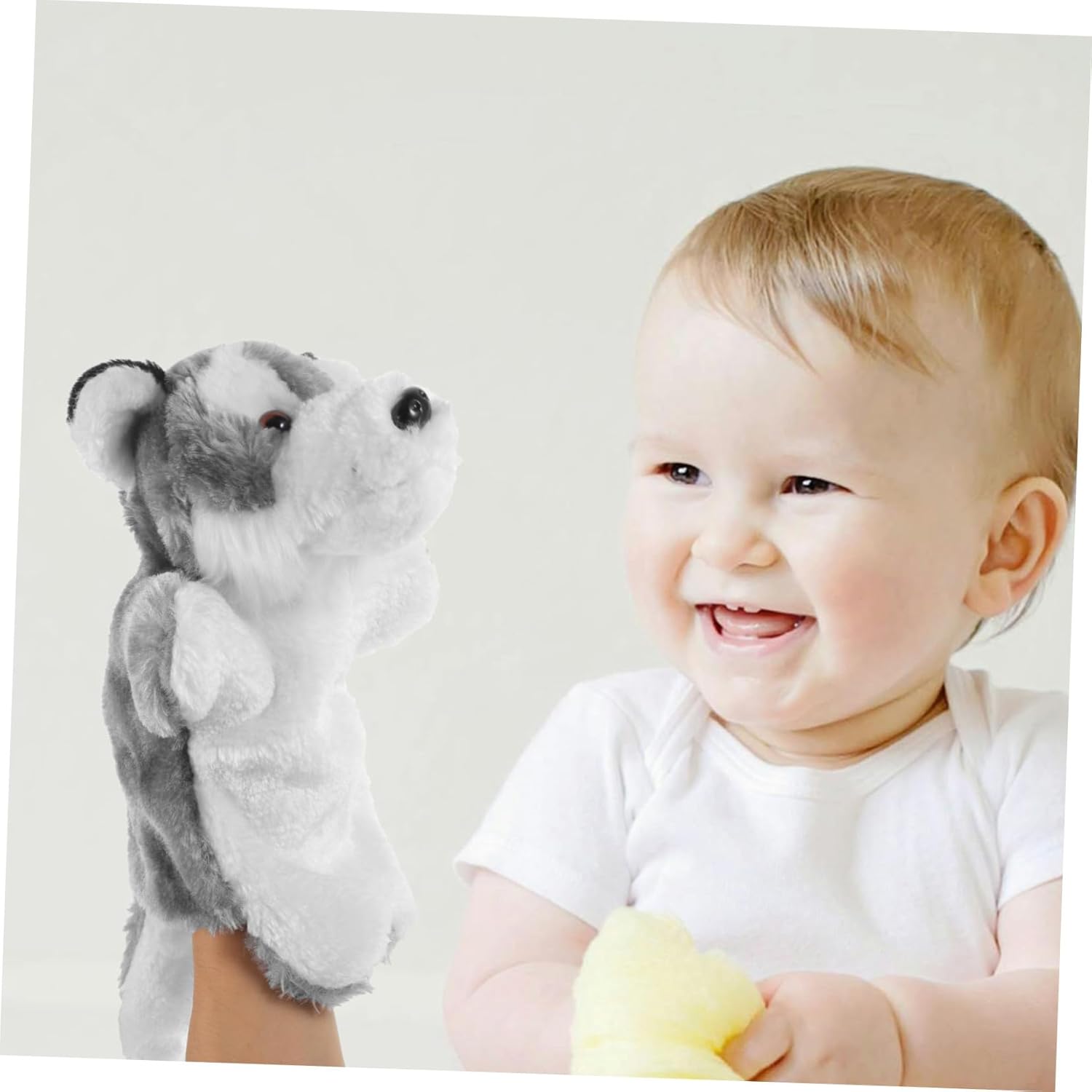 Burattino a mano di peluche - Il burattino a mano è ideale per migliorare le capacità motorie, la coordinazione occhio-mano, le capacità di comunicazione e costruire la fiducia in se stessi. bambola narrativa Marionetta creativa - comoda da toccare, la marionetta a mano del lupo dei cartoni animati è fantastica, divertente per la narrazione interattiva, adorabile marionetta imbottita Giocattolo per bambole per raccontare storie - la marionetta a mano è realizzata in cotone PP sicuro e materiali morbidi, flessibile, comoda da tenere, di buona consistenza, marionetta interattiva per la narrazione - questa marionetta a mano del lupo dei cartoni animati promuove la tua creatività e comprensione del bambino. burattino a mano con animale burattino a mano: lasciagli raccontare storie e regalagli una bella favola della buonanotte, burattini a mano per bambini piccoli