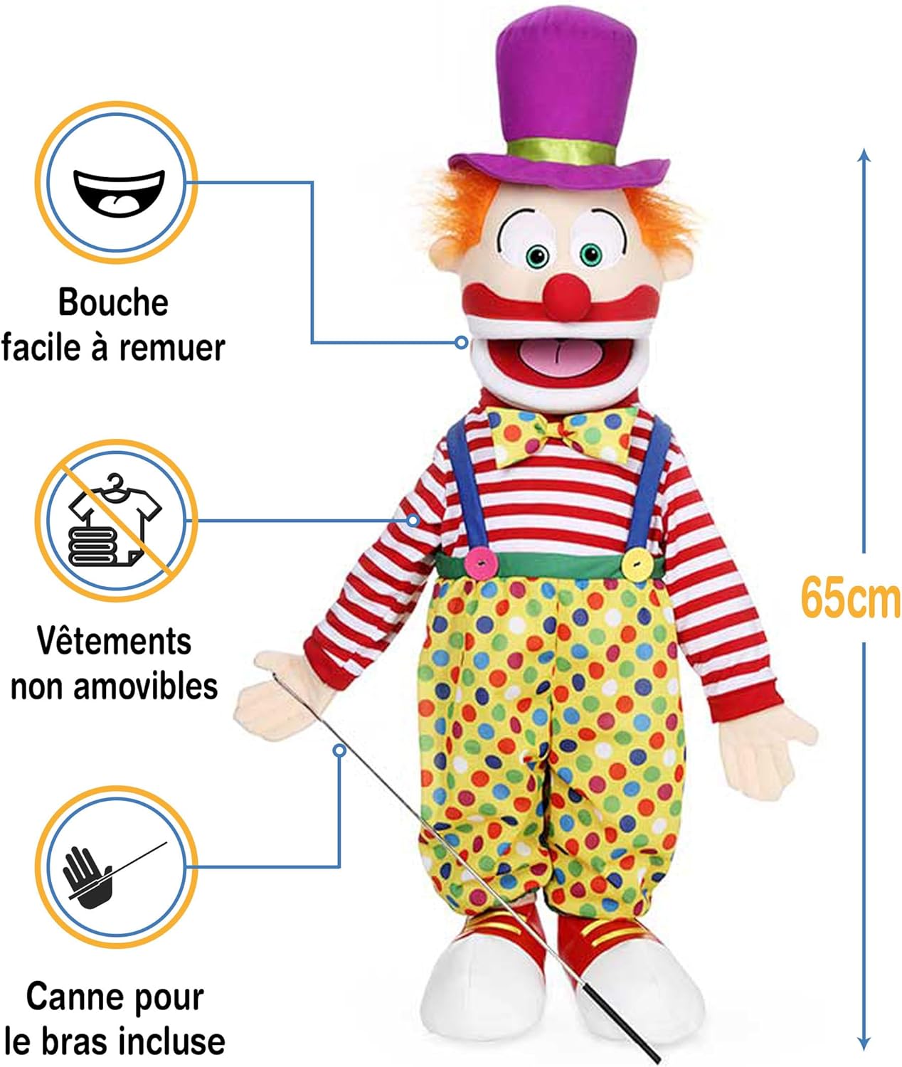 Burattino ventriloquo premium realizzato da Silly Puppets. Bocca facile da muovere. Ingresso manuale dal retro del burattino. Include 1 asta di controllo del braccio che può essere agganciata a entrambe le mani per il movimento. Altezza: ca. 63,5 cm. Leggero: pesa poco più di 0,5 kg. I vestiti e il cappello sono rimovibili, le scarpe no.