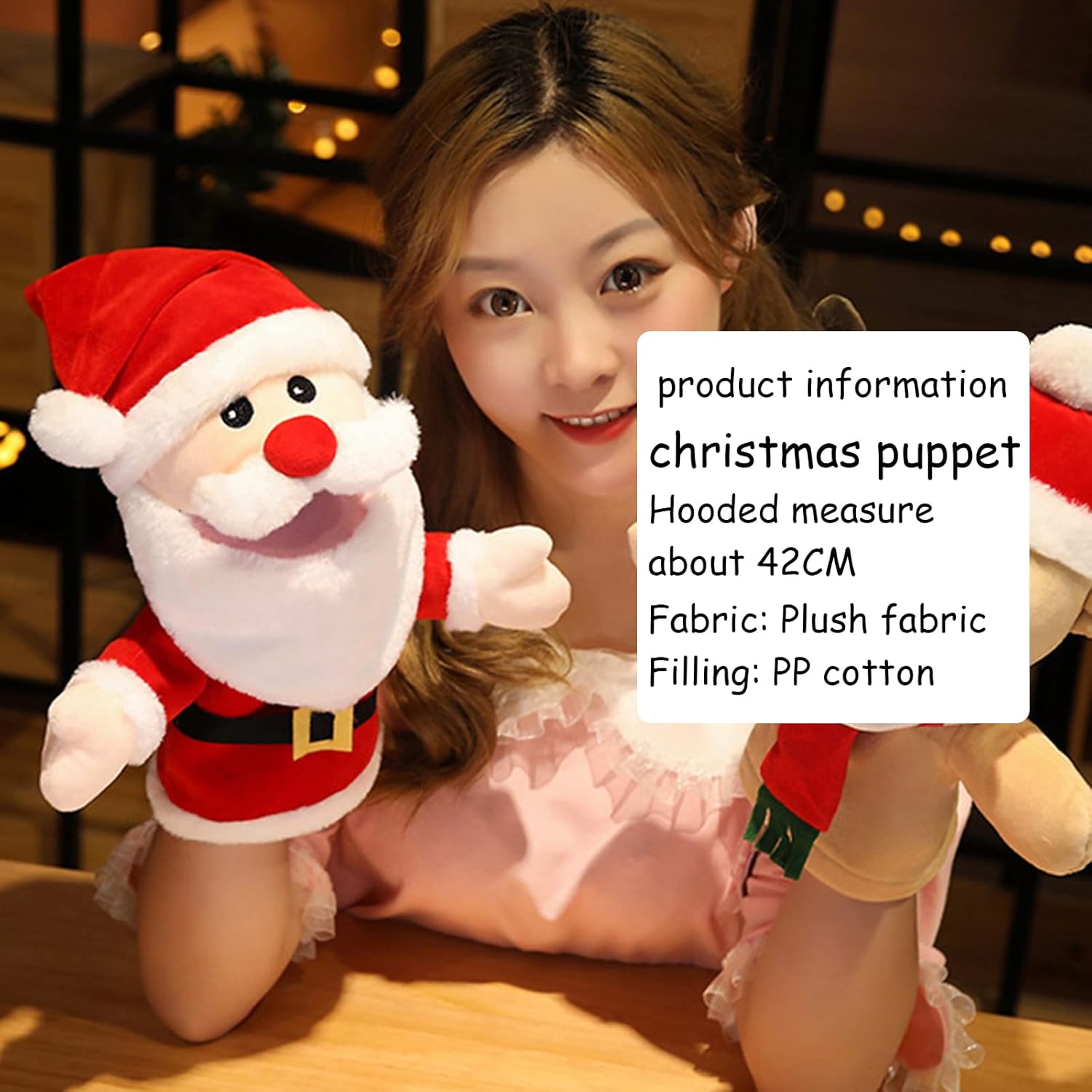 【MATERIALE PREMIUM】 - Questo burattino natalizio è realizzato in materiale di cotone PP sicuro, morbido e resistente, inodore e leggero. È perfetto per bambini o adulti. 【Come regalo di Natale】 - i nostri pupazzi sono perfetti per giochi di ruolo e narrazioni. I temi natalizi e i design carini rendono le nostre marionette ideali per i tuoi bambini o per i tuoi regali di Natale preferiti. 【Versatile】 - Puoi controllare le mani della bambola con il mignolo e il pollice e aprire la bocca con l'indice, il medio e l'anulare. In questo modo ha un'espressione e puoi imitare la sua voce. 【DIMENSIONE ADATTA】 - Le nostre marionette da mano sono perfettamente dimensionate per adulti e bambini e sono facili da usare. Di conseguenza, anche le persone con scarse capacità possono assistere ad azioni emozionanti. Le nostre marionette sono anche portatili e possono essere trasportate ovunque. 【Servizio】 - In caso di domande, non esitate a contattarci. ti risponderemo entro 24 ore. Elaboreremo il tuo reso o rimborso.