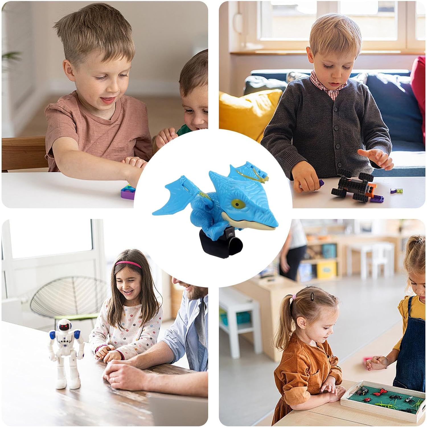 Ispirazione per storie creative: Con un design realistico di dinosauro, questi burattini con dita di dinosauro incoraggiano l"fantasia, consentendo ai bambini di creare storie e godere di più opportunità di gioco di ruolo con amici o familiari. Questo giocattolo aiuta a sviluppare l'immaginazione e la narrazione creativa nei piccoli, spingendo la loro curiosità e divertimento attraverso scenari di gioco in cui possono inventare e condividere i propri dinosauri. Materiali resistenti e sicuri: realizzati con bordi sicuri per bambini e materiale ABS resistente, questi burattini di dinosauro offrono un'esperienza di gioco sicura. Ciò garantisce che i bambini possano partecipare alla narrazione creativa di storie spensierate su angoli appuntiti o superfici non sicure, incoraggiando l'espressione artistica e il gioco simbolico. La durata del giocattolo permette un uso prolungato, ideale per sessioni di divertimento fantasioso e apprendimento con Gioco che stimola la curiosità: Con questi burattini a dito di dinosauro, i bambini possono immergersi nell"apprendimento dei dati sui dinosauri, migliorando la loro curiosità e garantendo una divertente crescita della conoscenza incorporandoli in giochi fantasiosi o discussioni di gruppo. Regalo Dinosauro Portatile: questo burattino di dinosauro presenta un design compatto e leggero che garantisce di essere facile da trasportare e ideale da regalare. Aumenta l'intrattenimento alle feste o agli eventi familiari grazie alla sua funzionalità giocosa e divertente, rendendo questo successo tra i bambini, consentendo momenti di gioco fantasiosi senza aggiungere bulk o peso aggiuntivo. Applicazione versatile e ampia: il giocattolo dinosauro per dita facilita la coordinazione mano attraverso il gioco interattivo, creando un mix ideale di intrattenimento e apprendimento che funziona perfettamente per i momenti familiari al chiuso e le interazioni di gruppo all'aperto. Stimola lo sviluppo di abilità sociali e motorie in un contesto divertente, consentendo ai bambini di esplorare diversi scenari in cui il divertimento e l'allenamento a mano si combinano di forma