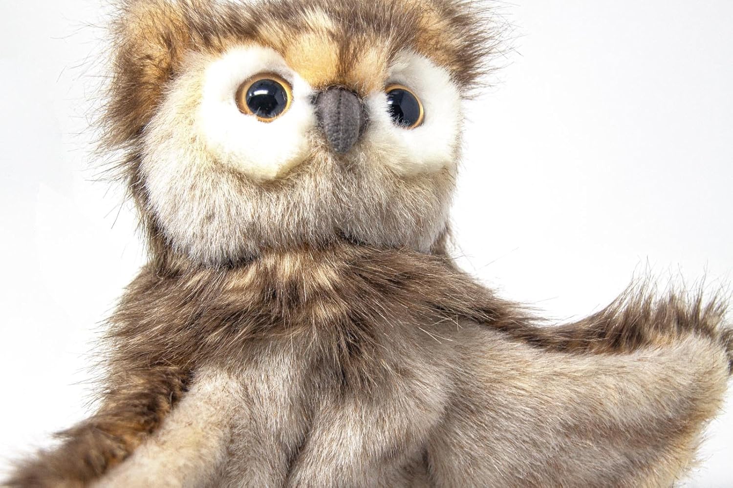 Gufo burattino di peluche Hansa Creation Fatto a mano, riempito con fibre riciclate. Idee regalo per gli amanti degli animali