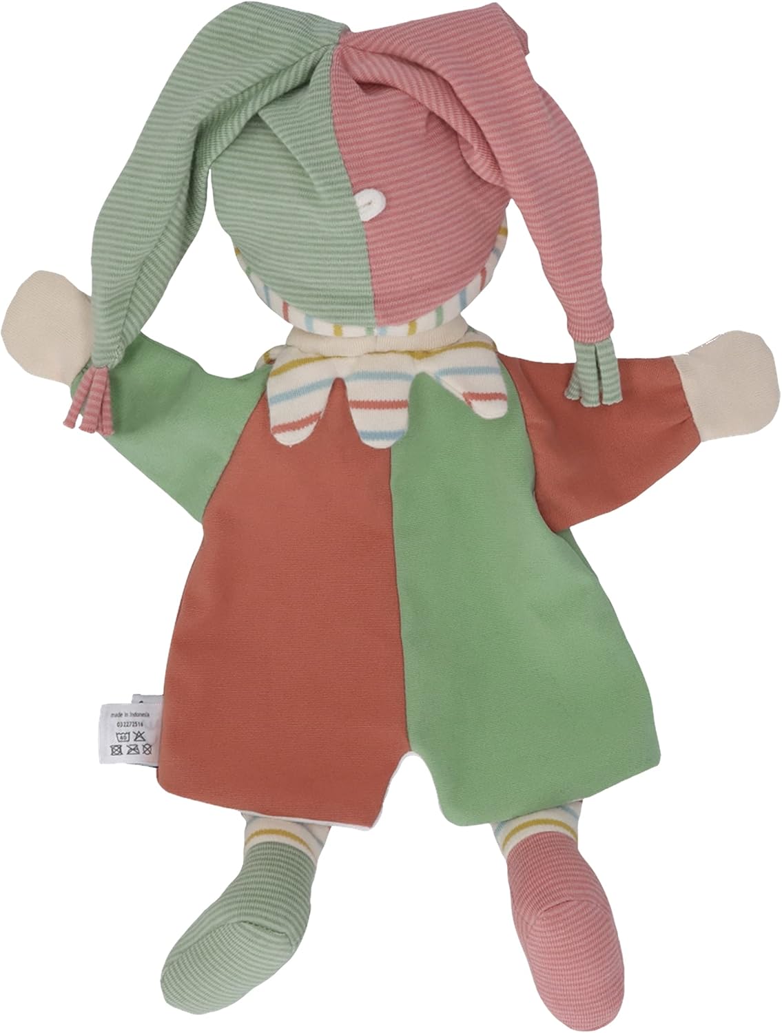 La morbida bambola Michel è realizzata in tela di cotone e morbido jersey. Stimola l'immaginazione e la creatività dei ragazzi e delle ragazze nel teatro Casperlet e nei giochi di ruolo. Il cofano diviso incornicia il volto ricamato della bambola di stoffa. Il materiale morbido e di facile manutenzione del burattino è adatto per coccolare, sognare e rilassare i piccoli artisti.