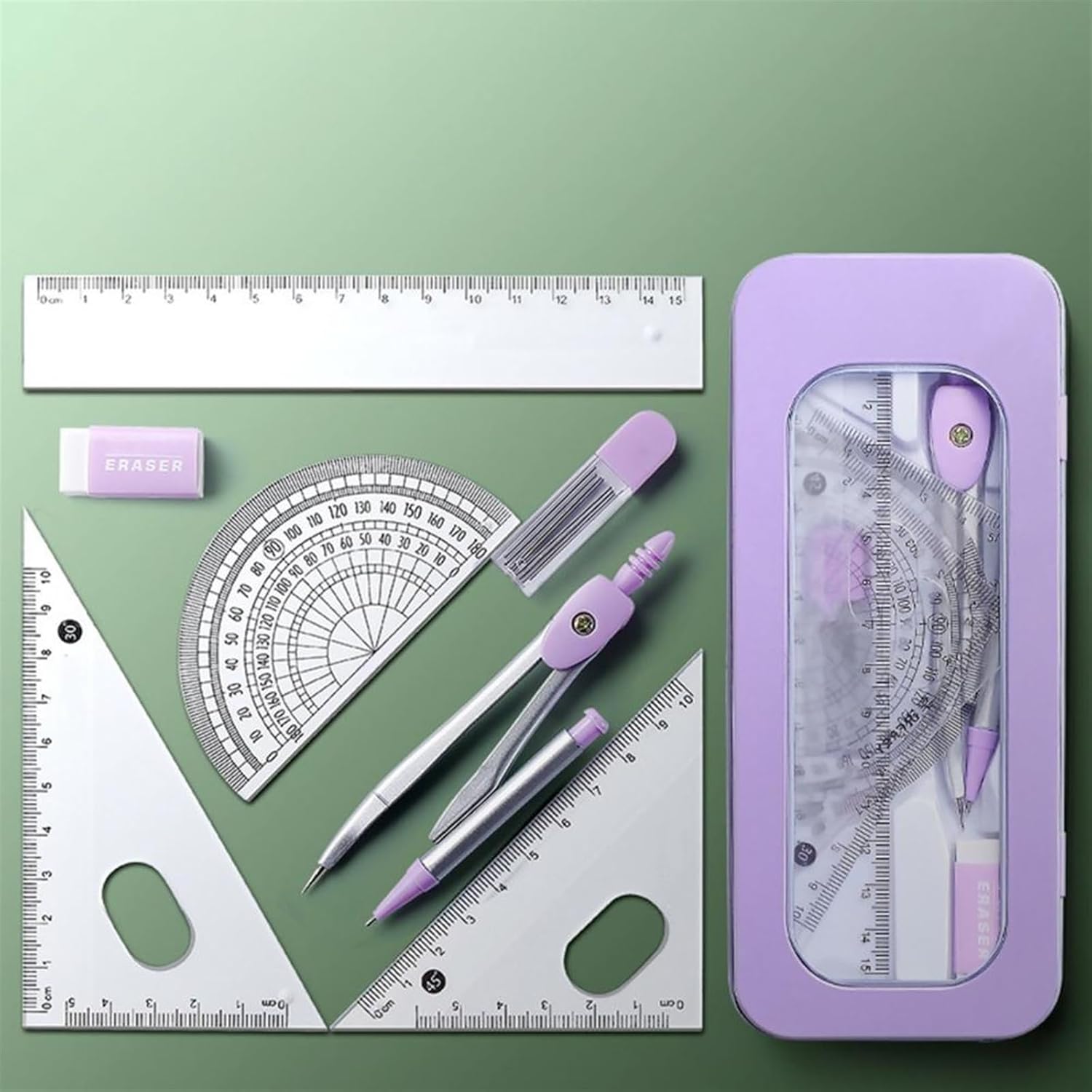 Perfetto per artisti, ingegneri, designer, studenti, insegnanti, architetti e altro ancora. Descrizione: questo set di righelli è progettato con scale chiare, che possono misurare con precisione lunghezze e angoli e aiutarti a disegnare figure geometriche precise. Questo set di geometria matematica è dotato di compasso, righello e goniometro per soddisfare le diverse esigenze ed è un valido aiuto per l'apprendimento degli studenti. È fatto di buon metallo e materiale plastico. Il prodotto è lungo 18 cm, largo 7,5 cm e alto 1,8 cm. Questo righello geometrico è adatto per la casa e la scuola.