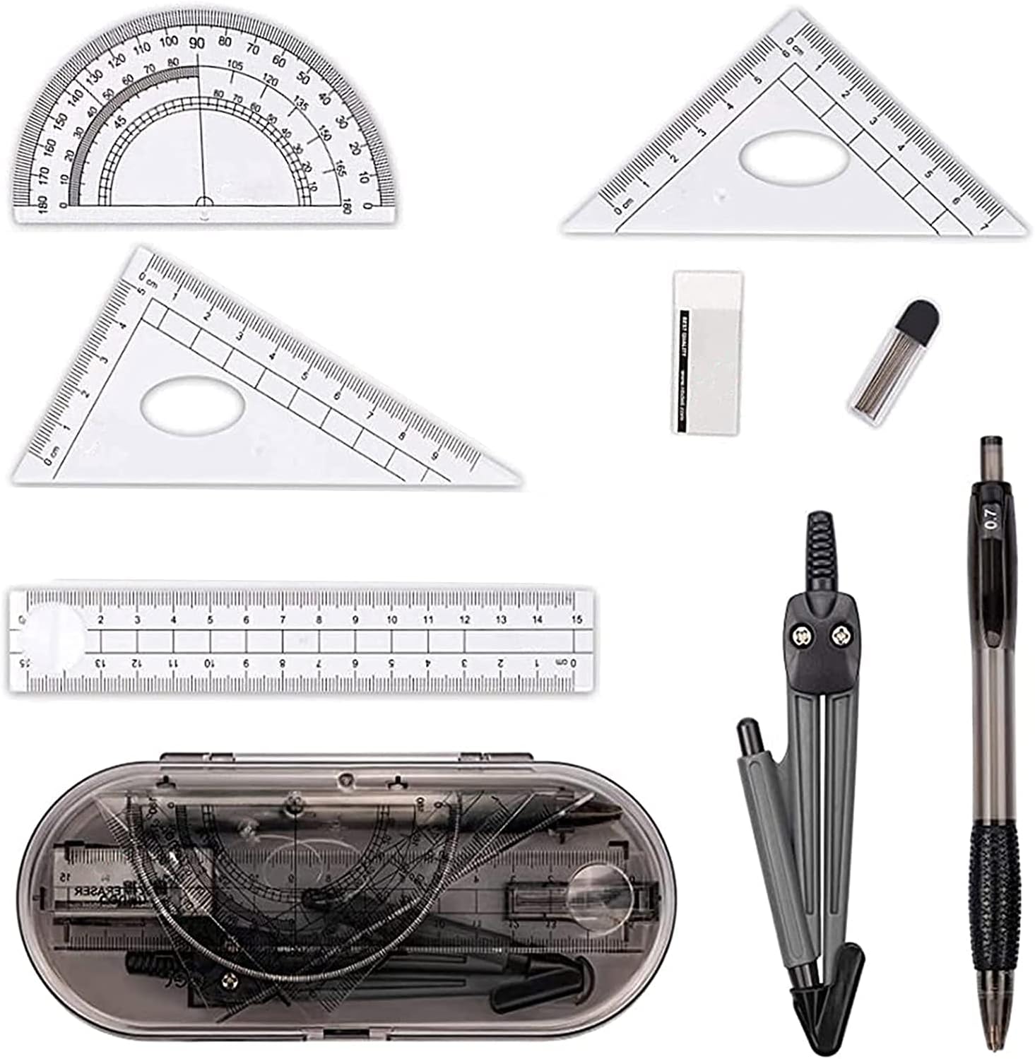 Bussola dimostrativa – può essere utilizzata non solo nelle lezioni di matematica, ma anche per realizzare graffiti sui muri e per insegnare la bussola L'insegnante usa la bussola: questo versatile strumento di disegno soddisfa facilmente le esigenze didattiche quotidiane, soprattutto con la sua bussola professionale Materiali didattici: la bussola a flagelli è adatta per architettura, applicazioni professionali, pittura, disegno tecnico, illustrazioni tecniche, ecc. Bussola a raggio per la scuola Bussola professionale in metallo – realizzata in ABS robusto e di alta qualità, è resistente e molto adatta per misurazioni e lavorazione del legno Strumento per disegnare cerchi – la bussola a raggio ha una superficie liscia e bordi arrotondati, che impedisce la mano lesioni. strumento educativo