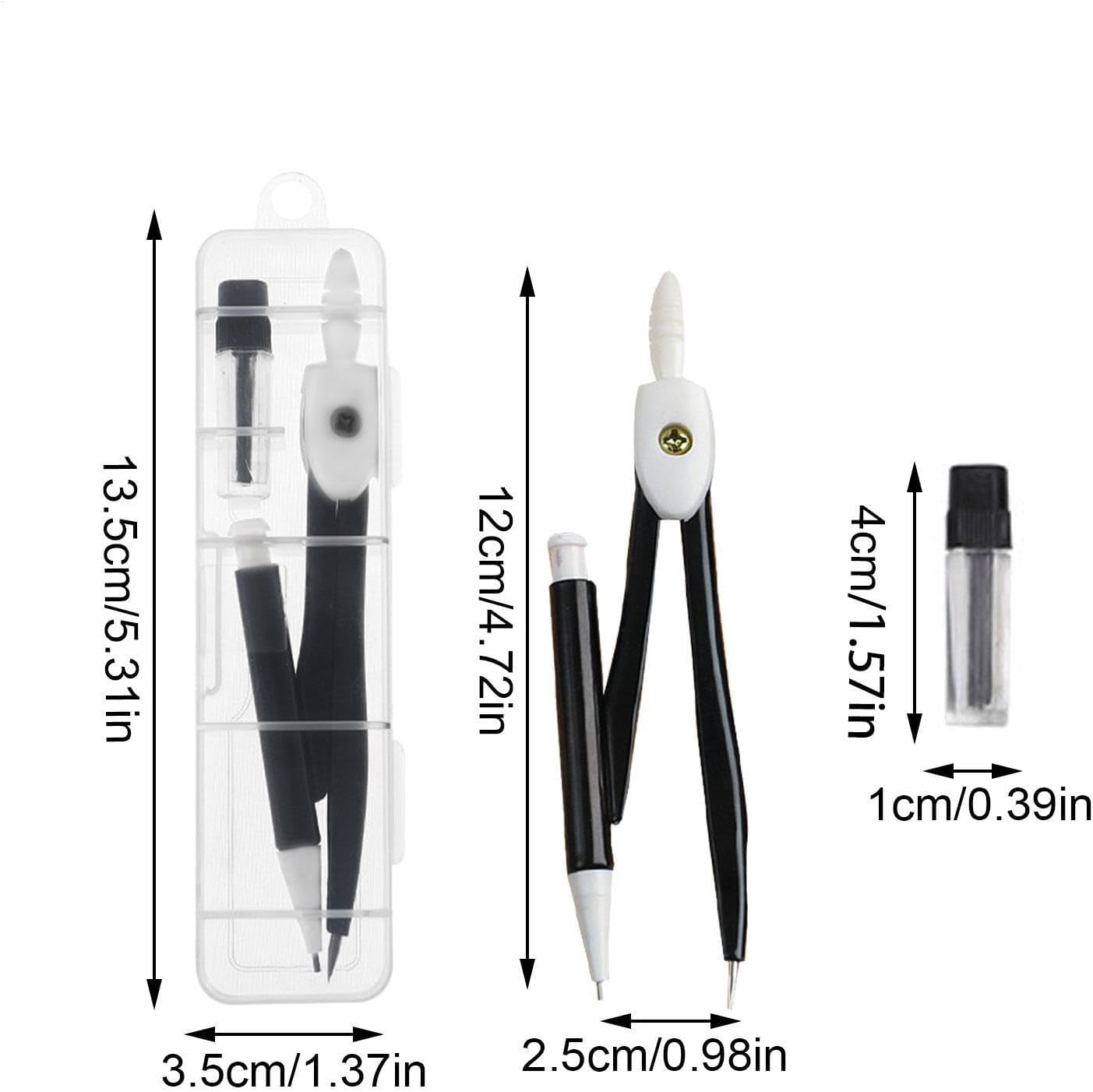 Previene lo scivolamento: con un design con manico antiscivolo, questo set di bussole da disegno è facile da usare e più conveniente. Garantisce precisione e impedisce lo scivolamento. Usi versatili: Diventa creativo con questo set di bussole da disegno, progettato per utenti di tutti i livelli. Perfetto per lezioni di geometria, progettazione architettonica, redazione, costruzione e altro ancora. Goditi molteplici funzioni con facilità. Ben fatto: realizzato in materiale PP resistente, il nostro set da disegno offre una precisione robusta, garantendo valore e precisione durature. Impermeabili e riutilizzabili, questi strumenti non arrugginiscono o si consumano nel tempo. Comodità di trasporto: semplifica il disegno all'aperto con questo set facile da trasportare e trasparente. Proteggendo i tuoi strumenti e mantenendoli visibili, questa scatola leggera e compatta non aggiungerà ingombro al tuo zaino o borsa. Semplice da usare: migliora la tua esperienza di disegno con facilità utilizzando questo set di compasso. Con la sua funzione semplice da usare, sostituisci la penna come preferisci con un nucleo di piombo da 0,7 mm e un nucleo di ricambio incluso nella confezione.