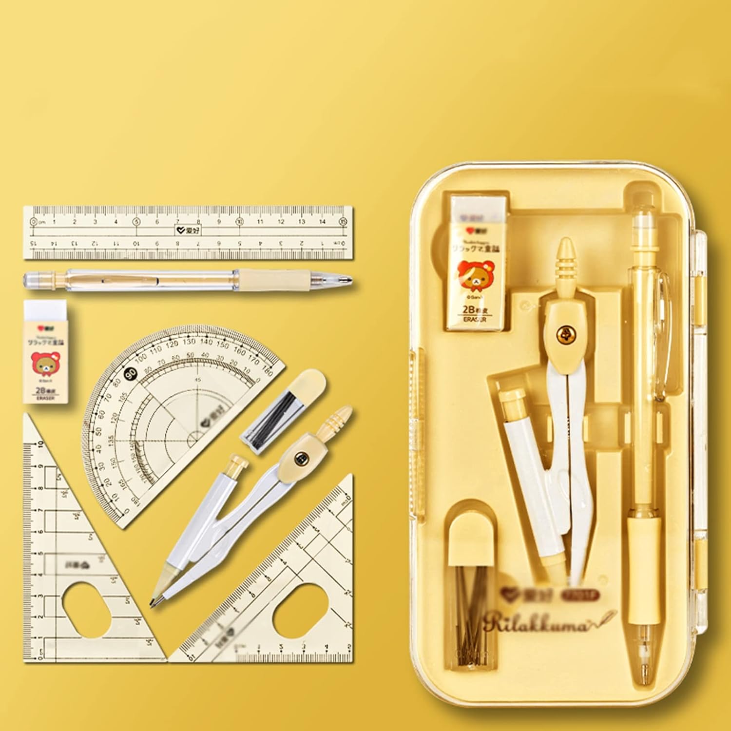 I compassi geometrici sono realizzati in acciaio inossidabile e gli strumenti geometrici sono realizzati in plastica di alta qualità, resistente e che può essere utilizzata per anni. È possibile selezionare una varietà di colori, il diametro massimo della bussola è di 23 cm. Il pacchetto include: 1 bussola da disegno, 1 matita meccanica, 1 ricarica di mina per matita da 0,7 mm, 1 gomma, 1 protatore, 1 righello dritto, 2 righelli triangolari. Viene fornito con una scatola di plastica, facile da trasportare e riporre. Questo kit di geometria con tutti gli elementi essenziali è adatto a insegnanti e studenti di qualsiasi livello.