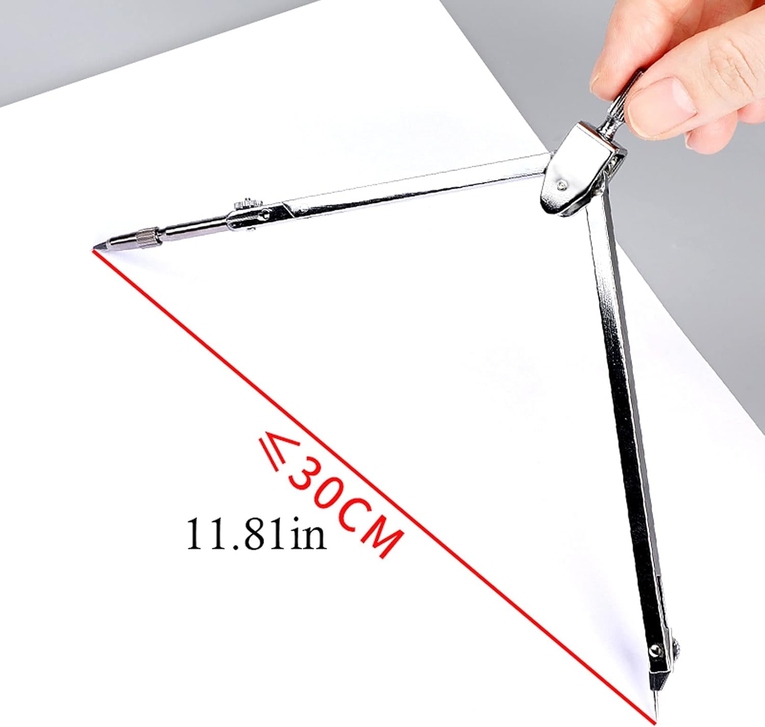 Il set di bussole è realizzato in metallo, resistente e durevole, non facile da piegare e deformare. La bussola matematica è completamente attrezzata per disegnare facilmente e un set di pagine è facile da usare. Quando si utilizza il kit geometria, scivola dolcemente, gira senza sforzo e si sente a suo agio. Il diametro della bussola può raggiungere i 30 cm/11,81 pollici quando utilizzato, quindi non è necessario preoccuparsi dei problemi di disegno causati dal diametro piccolo, sufficiente per soddisfare le esigenze della vita quotidiana. Il kit di geometria matematica ha una vasta gamma di applicazioni, non solo per uso personale, ma anche per insegnanti e compagni di classe. È un buon regalo. Adatto a insegnanti e studenti, il nostro set di compassi può disegnare qualsiasi forma geometrica.