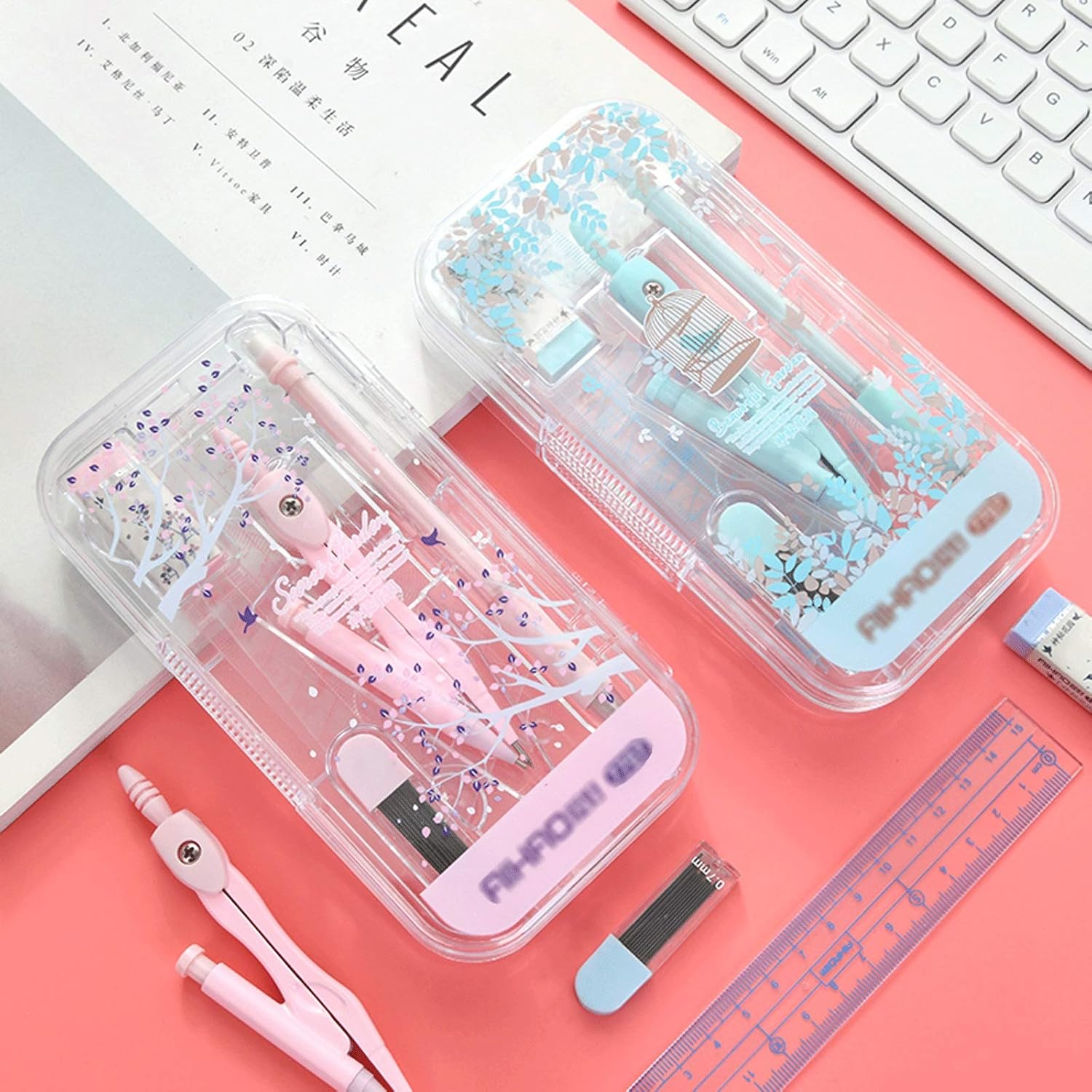 8 pezzi di matematica: gli strumenti di geometria includono bussola, protactor, 2 righelli triangolari (45 gradi e 30 gradi), matita meccanica, nucleo di piombo, gomma, righello Blocco da disegno con mina, utilizzato per disegnare cerchi o cerchi, resistente e facile da trasportare. Goniometro in plastica trasparente: il colore trasparente facilita la misurazione. Il goniometro può misurare 0-180 gradi da sinistra a destra e da destra a sinistra. Lo strumento geometrico è realizzato in plastica, leggero e facile da trasportare. Può essere messo in uno zaino o in un ufficio. Portatile e durevole: gli strumenti geometrici sono fatti di plastica, leggeri, facili da trasportare, possono essere messi in uno zaino o in un ufficio. Ampia gamma di applicazioni: il set di strumenti geometrici matematici è uno strumento utile per architetti, ingegneri, artisti, designer, studenti, insegnanti, ecc. Adatto agli studenti.