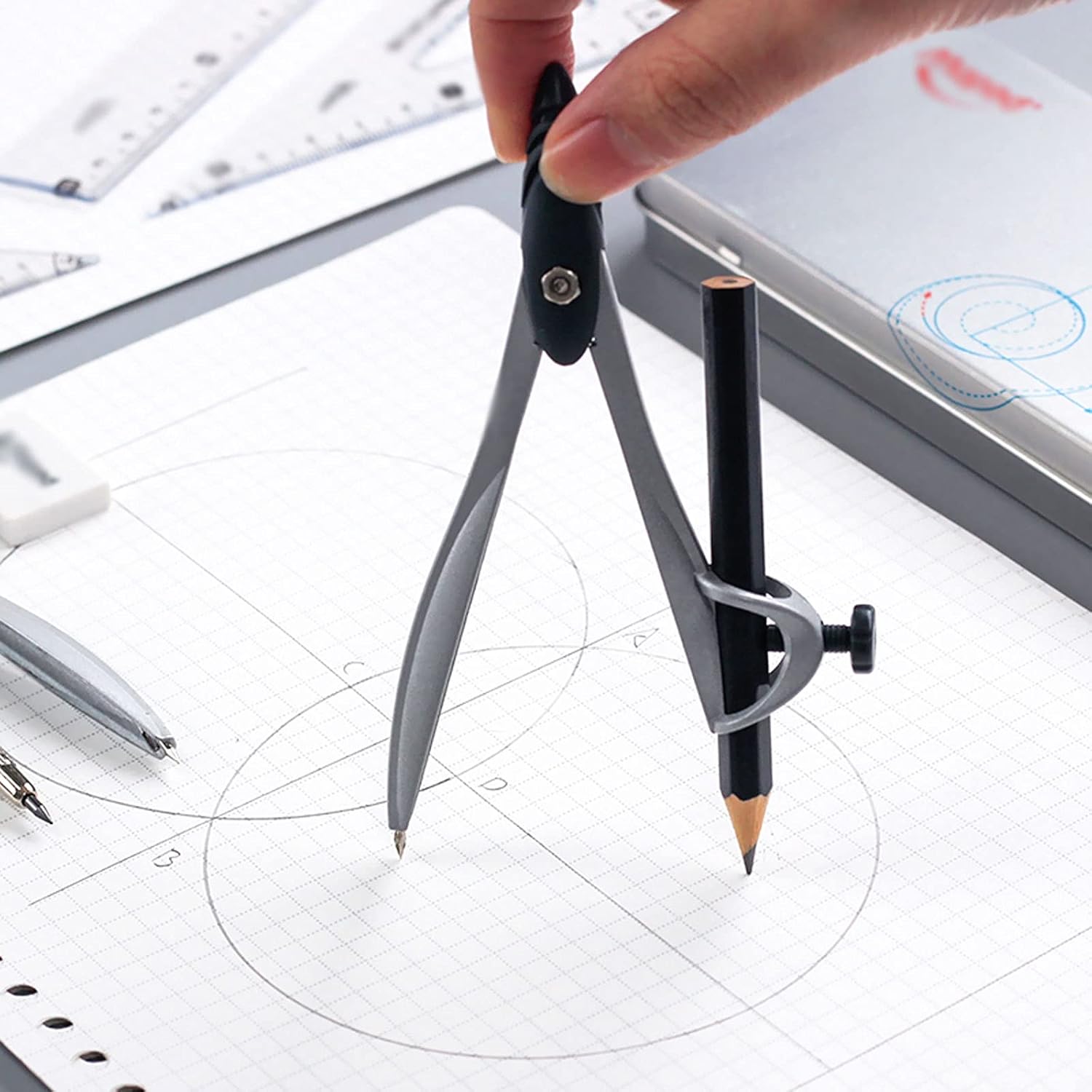 Set di dieci pezzi: un righello, due compassi, una gomma, un taglierino a 180°, un temperamatite, due triangoli (60° e 45°), una matita e una mina. Il set di bussole è realizzato in acciaio inossidabile, resistente e facile da trasportare. La bussola matematica può soddisfare diversi requisiti di disegno ed è comoda da usare. Il kit di geometria è confezionato singolarmente per una facile conservazione. Il kit di geometria matematica può essere utilizzato per lavorare a scuola, in ufficio, a casa o per uscire.