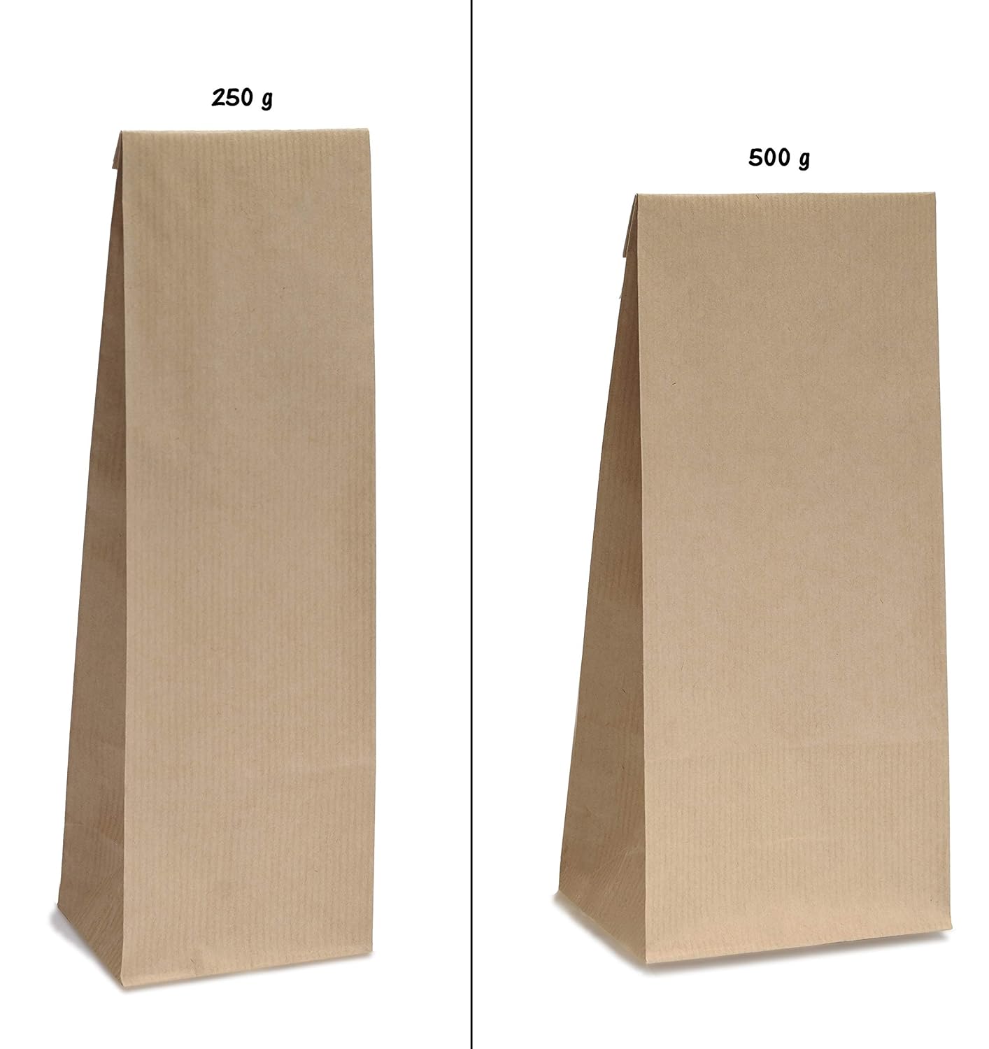 Busta da 100 g, 250 g o fino a 500 g senza finestrella Carta kraft da 70 g (strato esterno) con strato interno sostitutivo della pergamena da 40 g Ideale per tè sfuso, farina, biscotti, spezie, erbe aromatiche, dolciumi, pasticcini, come sacchetto regalo o per il calendario dell'Avvento Adatto per alimenti - Protezione dell'aroma - Made in Germany