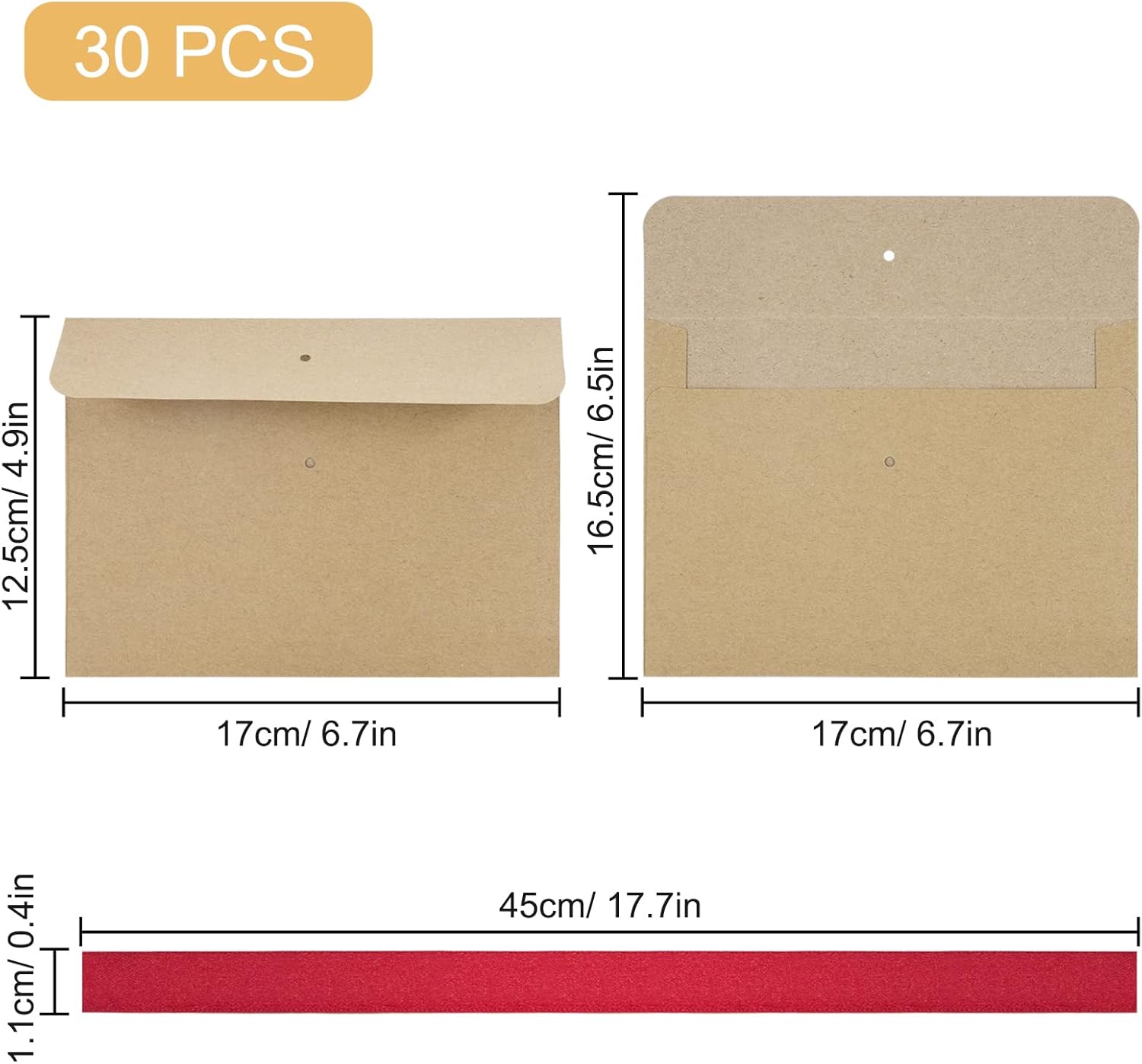 Materiale Premium: Buste di carta kraft marrone, spesse e strutturate, lisce e delicate al tatto, non facilmente spezzabili o deformabili, possono proteggere le vostre lettere o carte. Buste creative: Le buste bianche si creano secondo le idee e le preferenze scrivendo, disegnando o incollando adesivi per creare buste uniche e significative che mostrano il tuo gusto per la moda. Dimensione perfetta: 17.2*12.5cm/6.77*4.9in. 30 mini buste con nastro per confezione per biglietti da regalo, biglietti d'auguri, note di ringraziamento, inviti, buoni regalo, cartoline, foto, ecc. Moda elegante: Il design del nastro della busta in pelle bovina rende questa carta ancora più bella e unica ma pratica. Sigilla senza l'uso di colla o nastro e non danneggia la busta quando viene aperta. Ampiamente usato: per contenere inviti di nozze, biglietti d'auguri o vacanze. Perfetto per il Ringraziamento, San Valentino, anniversari, baby shower, laurea, inviti aziendali, ecc.