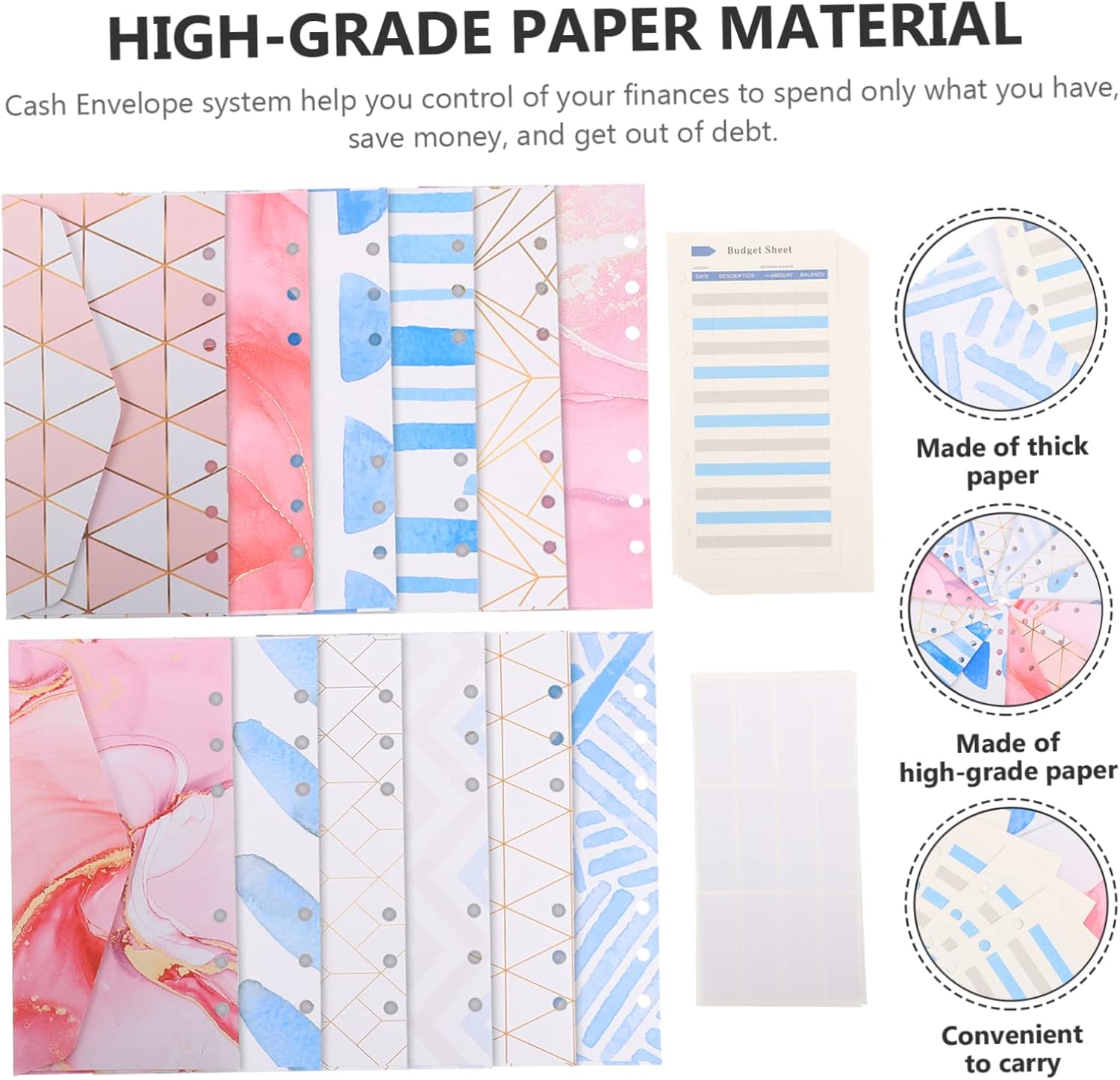 Forniture per ufficio: può effettivamente aiutarti a registrare il tuo budget in dettaglio, farti chiaramente dove vengono spesi i tuoi soldi, buste di denaro del budget Inviluppo di budget: aiutarti a controllare le tue finanze nel tuo piano di budget mensile personale o nel portafoglio, tasche di legante Buste pratiche in contanti: le buste di budget in contanti sono leggere, il che ti consente di trasportarle in , in modo da poter rimanere organizzato in viaggio, buste in contanti aziendali Budget fai da te bidone: la tabella del budget che registra tutto il denaro è facile da usare, molto pratico e conveniente, buste di bilancio delle foglie sciolte Buste in denaro decorativo: la busta di bilancio può essere trasportata a tuo agio nella tua borsa per poterlo utilizzare sempre, ovunque, busta budget a foglia libera