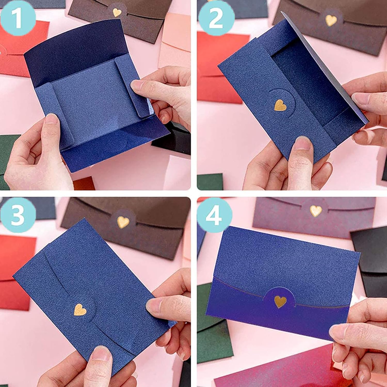 Materiali: queste buste sono realizzate in materiale cartaceo perlescente di alta qualità, non facilmente rotto o deformabile, e possono proteggere le tue carte o lettere dalla deformazione e altro ancora Set di buste regalo: il pacchetto include buste per carte regalo da 30 pezzi, queste hanno 6 colori assortiti, ogni colore 5 pezzi, colori pieni e quantità sufficienti per soddisfare le tue diverse esigenze Design raffinato: il sigillo delle mini buste è progettato con una chiusura a cuore abbronzante. le buste perlate sono luccicanti e lucenti, progettate per dare a ogni busta un aspetto più lucido ed elegante Personalizza il tuo stile: le buste sono vuote e non stampate, puoi personalizzarle con il tuo messaggio o disegno, le buste di carta spessa possono essere dipinte, stampate, inchiostrate, stampate e abbellite Ampie applicazioni: adatto per carte regalo, etichette regalo, auguri di compleanno, lettere e puzzle, ottimo come accessorio per vacanze, Natale, Capodanno, San Valentino e così via