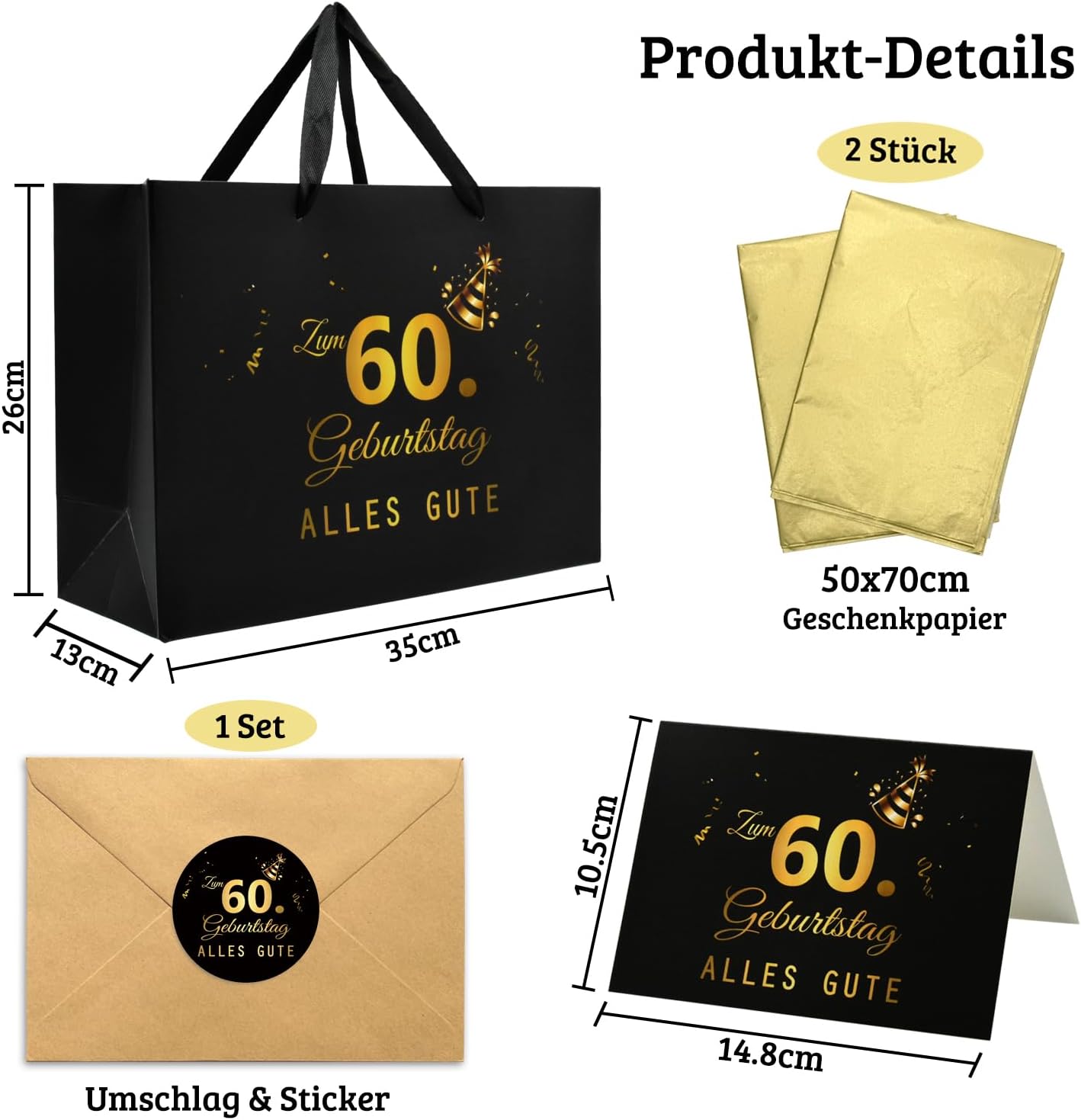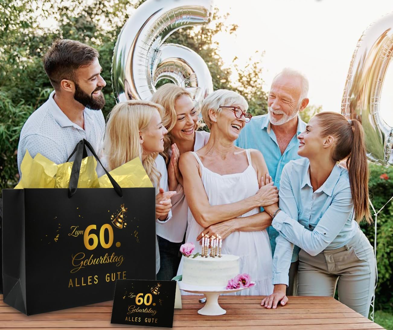 Unico: sacchetti regalo per il 60° compleanno in carta con manici, stampati con "TUTTO IL MEGLIO PER IL 60° COMPLEANNO" + 1x foglio di carta velina bianca + 1x biglietto di auguri + 1x busta + 1x adesivo. Dimensioni: sacchetto regalo: 26 x 22 x 10 cm; carta velina: ca. 50 x 70 centimetri; biglietto d'auguri: 14,8 x 10,5 cm; busta: 16 x 11 cm; adesivo: 4 cm; la carta velina è perfetta per decorare la borsa o per incartare piccoli regali. 𝑸𝒖𝒂𝒍𝒊𝒕ä𝒕: Sacchetti regalo in carta particolarmente resistenti: riutilizzabili, riciclabili, rispettosi dell'ambiente, degradabili e compostabili. Grande valore: quello perfetto Accessori di decorazione per feste e feste di 60 anni. Facile da trasportare: ampio spazio per regali, regali in contanti, dolcetti o bomboniere: le robuste borse con manici con coulisse sono particolarmente facili da trasportare.