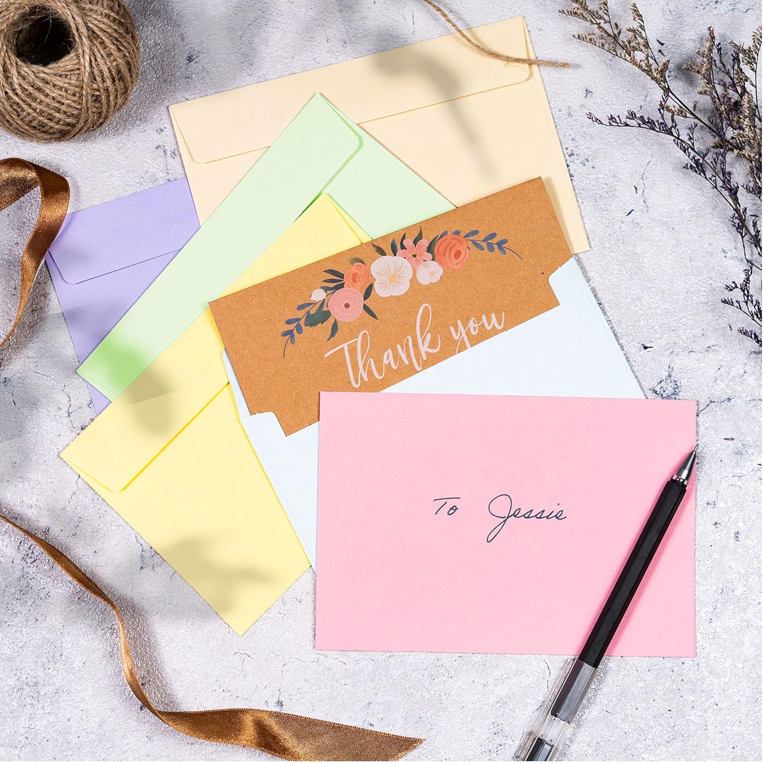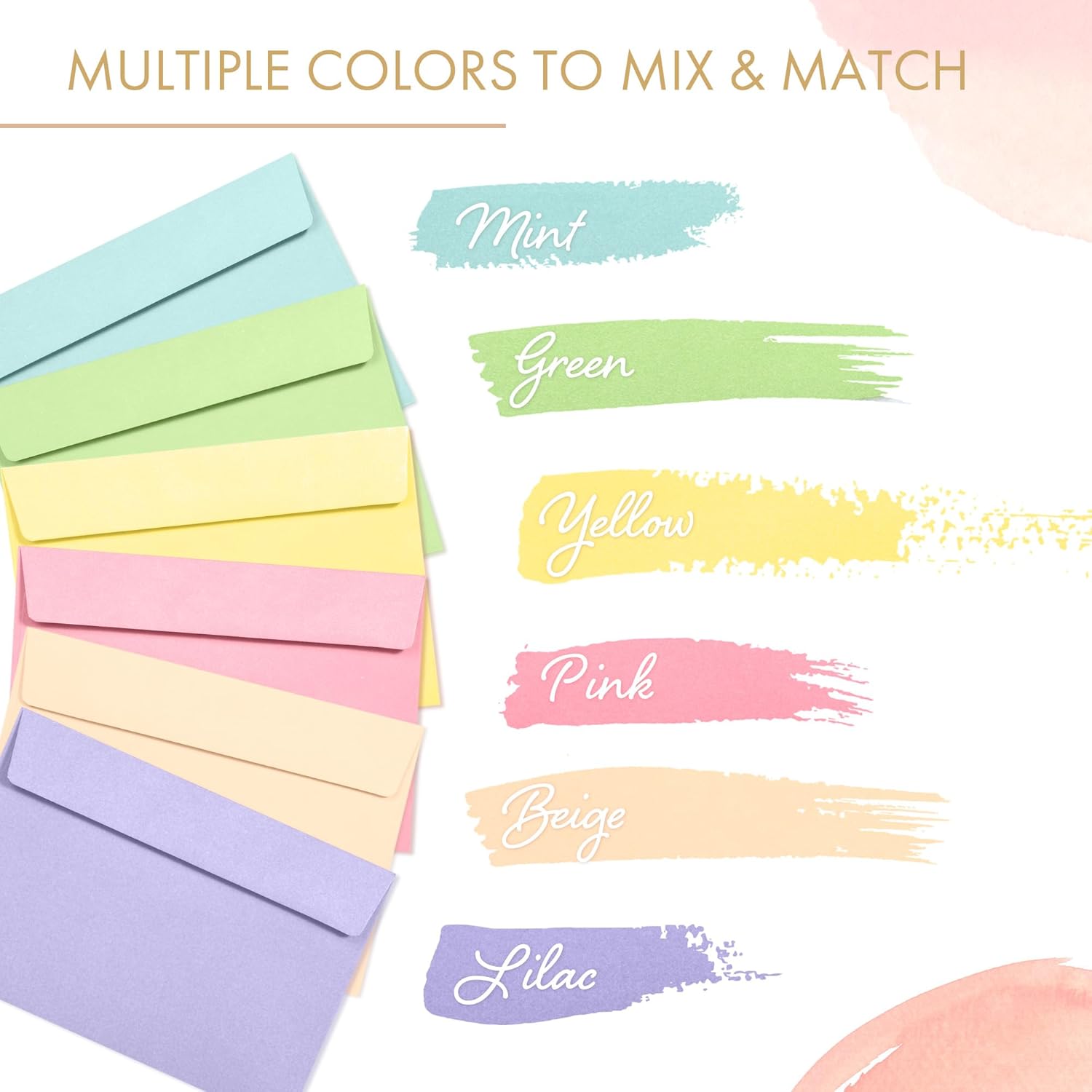 Eleganti colori pastello: una tavolozza morbida e allegra per ogni occasione. Questo set di 48 buste colorate C6 include sei tonalità calmanti, verde, giallo, rosa, beige e lilla, perfette per i vostri partecipazioni, biglietti di ringraziamento o corrieri quotidiani. Finitura liscia di qualità: piacevole al tatto e facile da scrivere. Realizzate in carta spessa e setosa, queste buste A6 offrono una superficie ideale per scrivere a penna o feltro, senza sbavature. Chiusura gommata tradizionale: semplice e sicura. Basta inumidire il lembo e premere, non è necessario adesivi o strisce adesive. Una chiusura pulita e affidabile per le tue spedizioni. Versatili e pronti per tutte le occasioni: perfetti per matrimoni, compleanni, o poste. Queste buste pastello aggiungono un tocco di fascino a ogni messaggio, che si tratti di un biglietto o di una nota premurosa. Formato C6 ideale per carte A6: adatto per carte da 10,5 x 14,8 cm e fogli A5 piegati. Ogni busta misura 114 x 162 mm, perfetta per stampe 10 x 15, biglietti di auguri, inviti o foto.