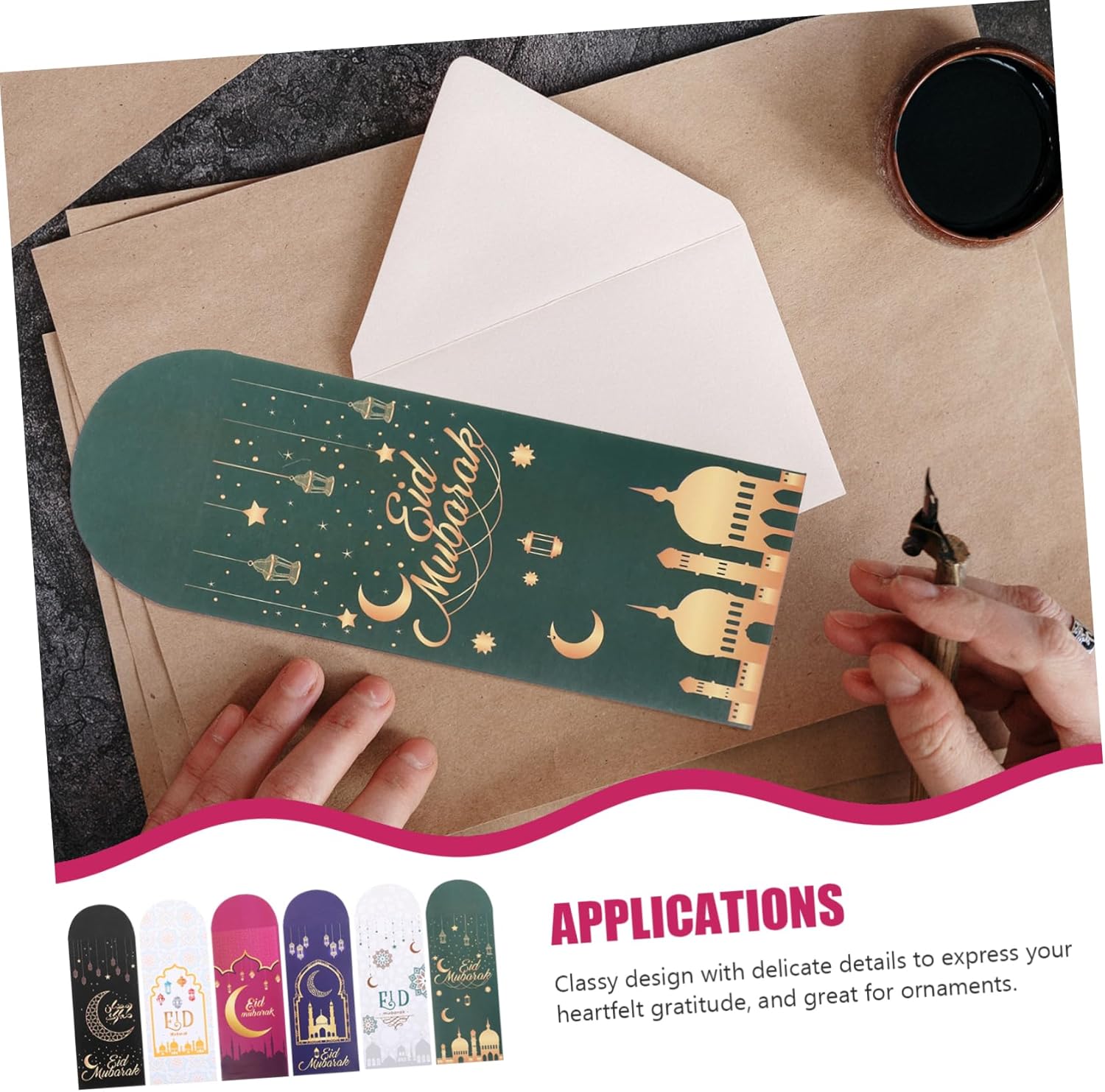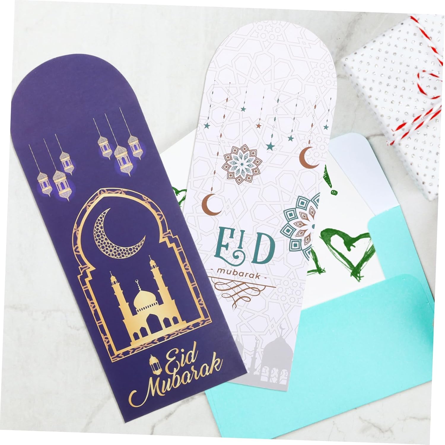 Buste di carta per eid mubarak: in occasione della festa, ti inviamo un piccolo , perfetto per aumentare l'amicizia della famiglia, buste uniche per eid mubarak Busta vuota per le vacanze: la lavorazione squisita e l'aspetto speciale possono dare un look alla tua festa di eid, un buon effetto decorativo, buste per l'imballaggio delle carte eid Busta per feste musulmane: progettata con elementi a tema eid, molto e attraente, può rendere la tua lettera di invito più unica, buste per celebrazioni eid Buste per contanti: il design ragionevole le rende molto adattabili e possono contenere la maggior dei biglietti di auguri e buste per contanti Porta denaro: contiene più buste, puoi condividerle con i tuoi amici durante la festa dell'eid, buste per l'eid