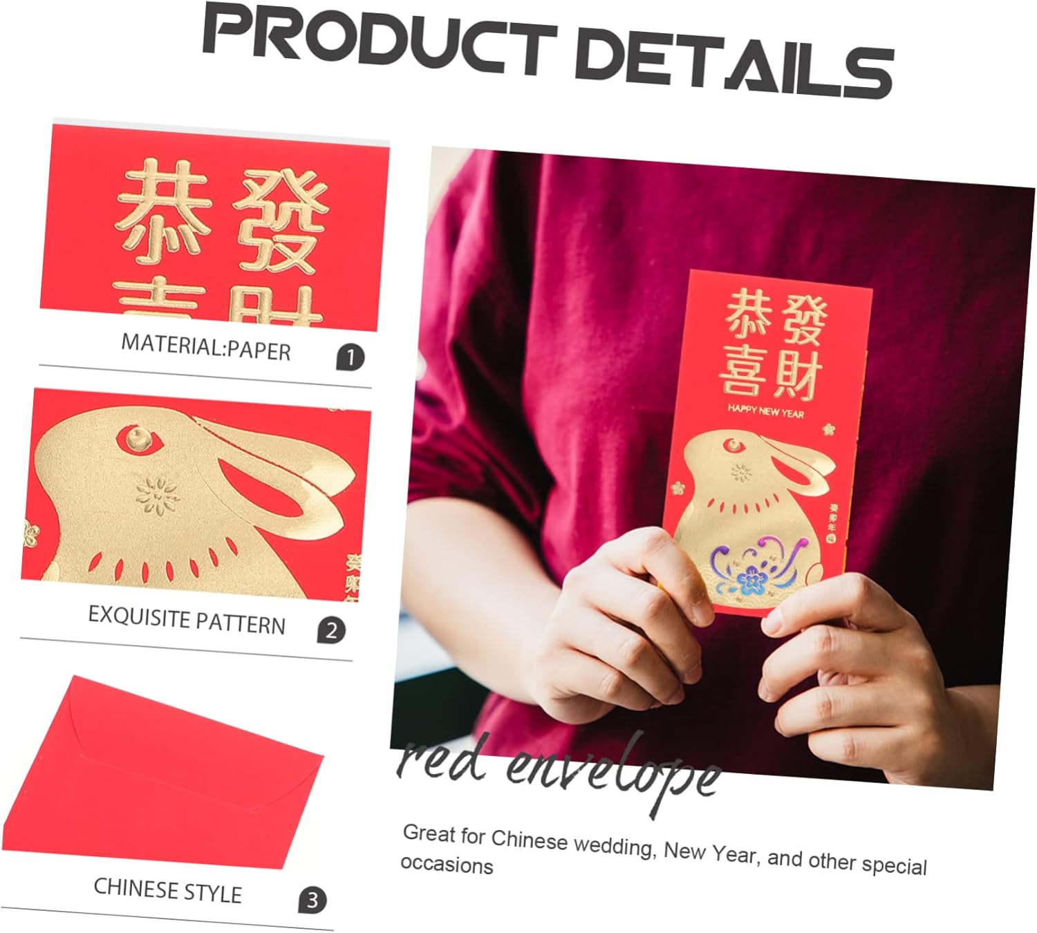 per la festa di : con una lavorazione pregiata, non è facile strapparle, queste buste rosse sono leggere, facili da portare con sé, busta rossa per la festa Tasca rossa per i soldi: ogni busta rossa augura ai destinatari gioia, prosperità, benedizioni, che possono portare benedizioni alle vostre famiglie e ai vostri amici, pacchetti rossi per il anno Sacchetto di denaro per il anno: ha motivi stampati con coniglietti dello zodiaco, le benedizioni sono chiaramente visibili, bello e pratico per l'uso del anno, pacchetti di carta rossa con coniglietto Busta rossa: progettata con motivi a forma di coniglio, il bambino sarà attratto da queste buste rosse, busta rossa in stile cinese Busta rossa con motivo a coniglio: le buste con motivo a coniglio zodiacale sono uniche ed ereditano la cultura tradizionale cinese, busta rossa di carta