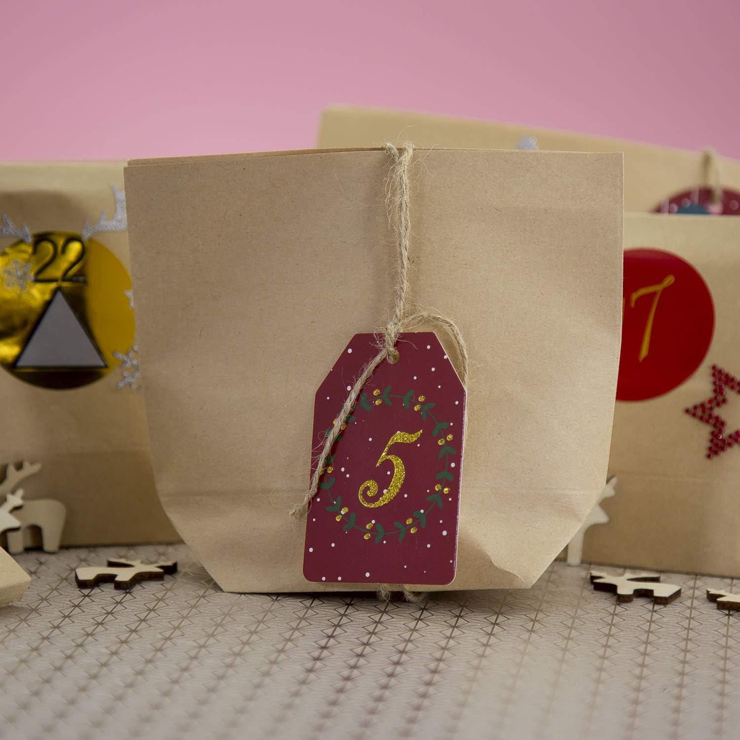Quantità: 24 robusti sacchetti di carta Materiale: carta kraft Ogni sacchetto misura 15 x 13 cm Ideale come sacchetto regalo o confezione regalo per Natale, compleanni, feste di compleanno per bambini o come confezione per sacchetti regalo - ideale anche per creare un calendario dell'Avvento fai da te